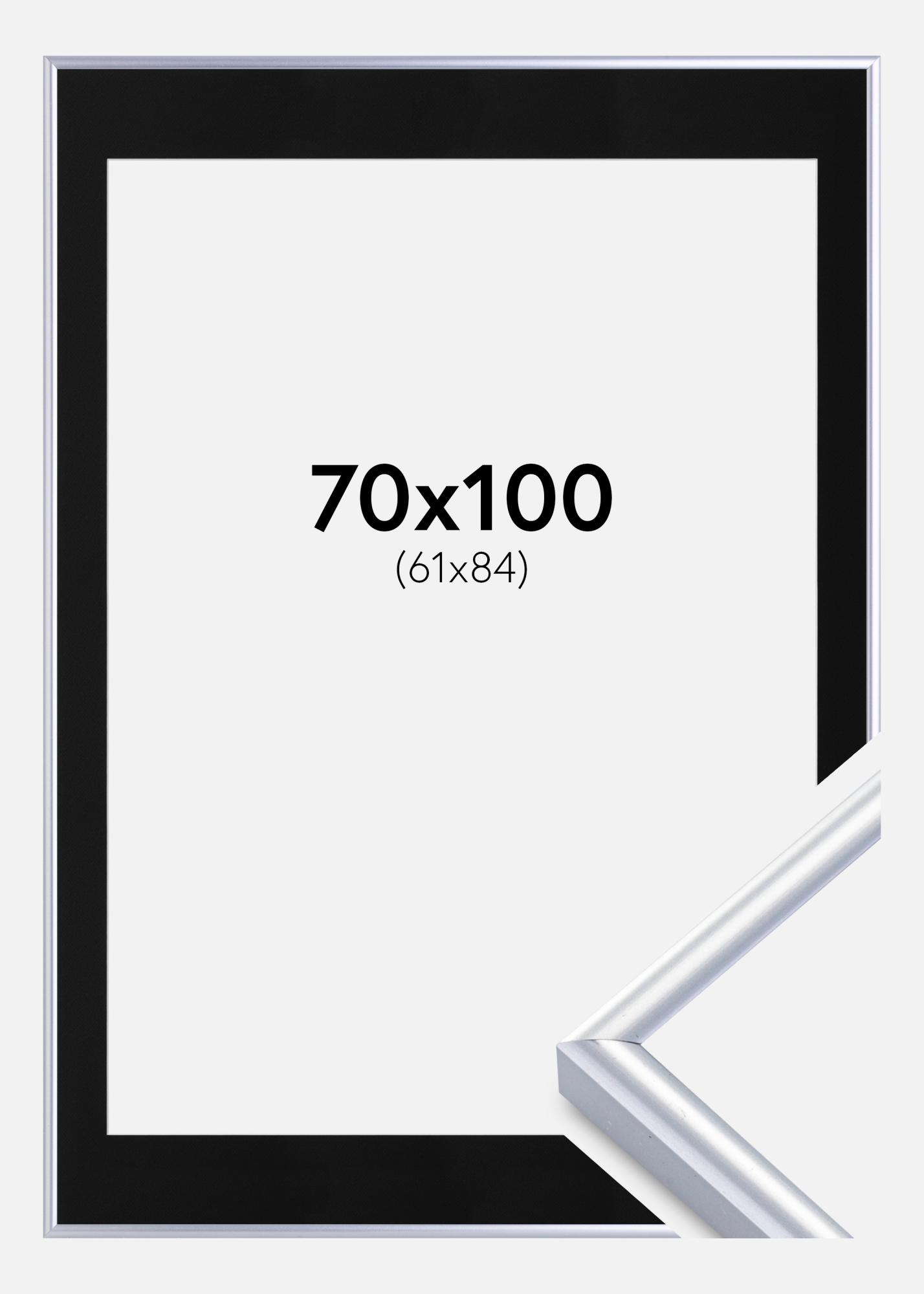 Rahmen Victoria Silber 70x100 cm - Passepartout Schwarz 62x85 cm