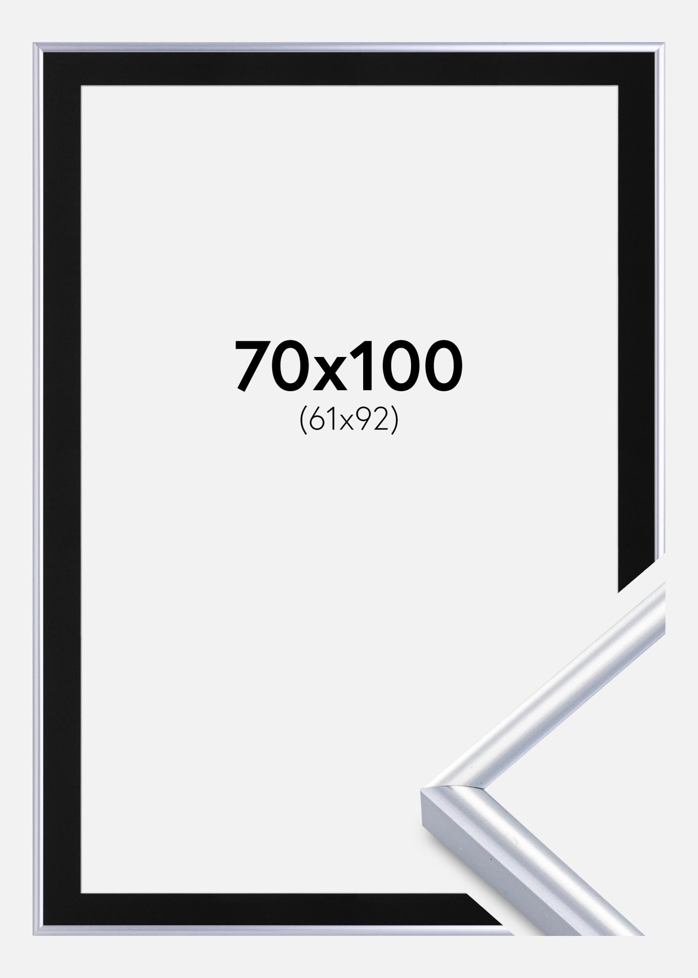 Rahmen Victoria Silber 70x100 cm - Passepartout Schwarz 62x93 cm