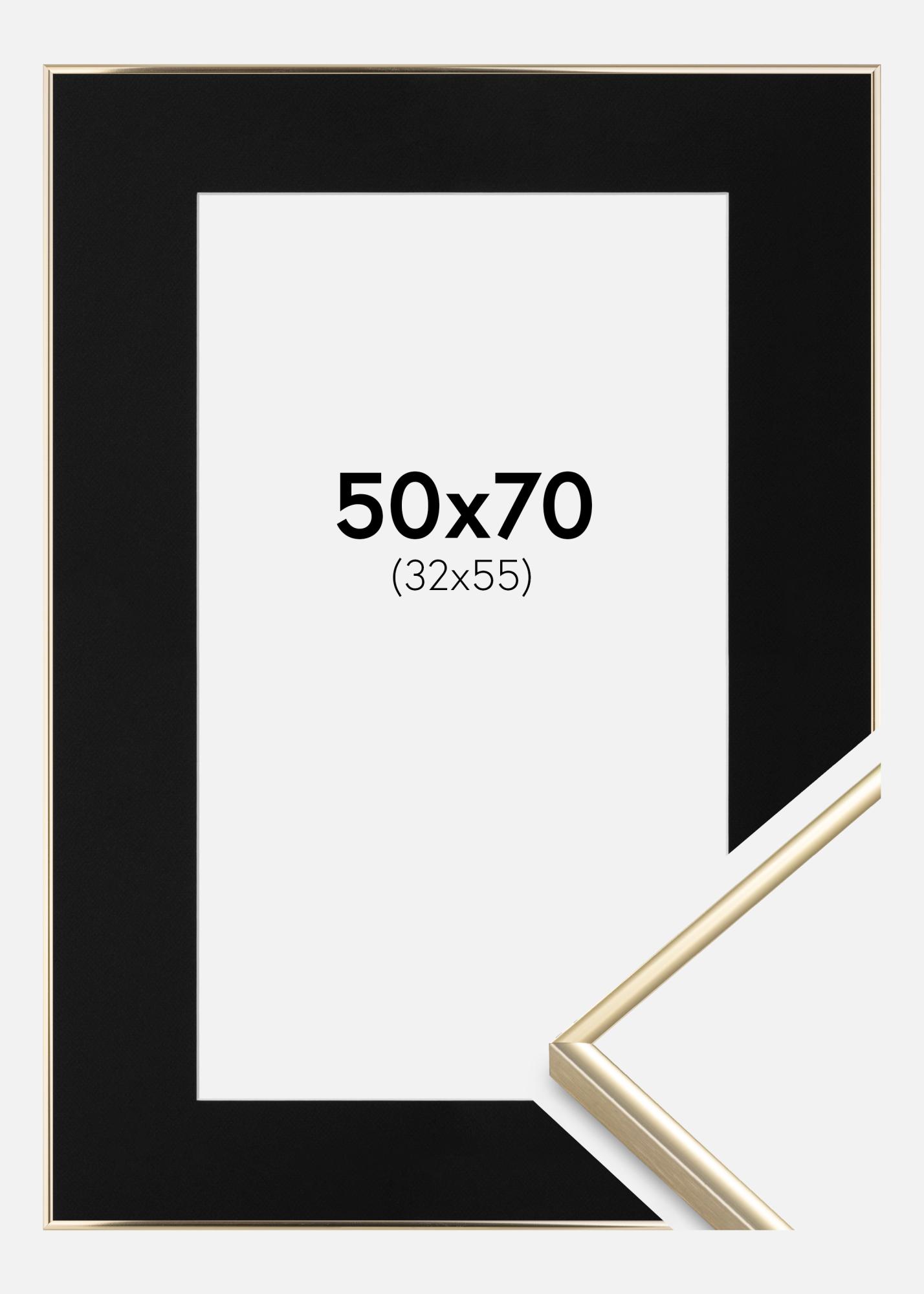 Rahmen Visby Gold Glänzend 50x70 cm - Passepartout Schwarz 33x56 cm