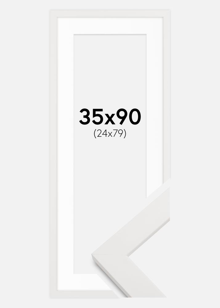 Rahmen Weiß holz 35x90 cm - Passepartout Weiß 25x80 cm