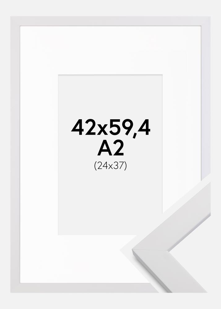 Rahmen White Wood 42x59,4 cm (A2) - Passepartout Weiß 25x38 cm