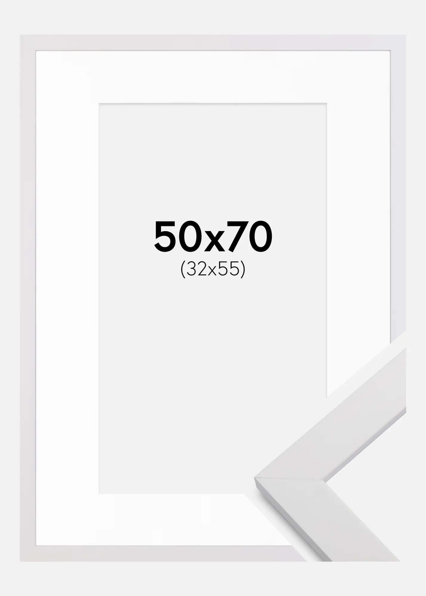 Rahmen White Wood 50x70 cm - Passepartout Weiß 33x56 cm