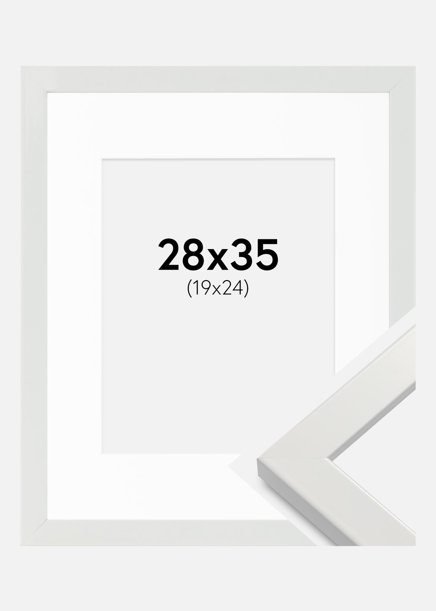 Rahmen White Wood Glossy 28x35 cm - Passepartout Weiß 20x25 cm