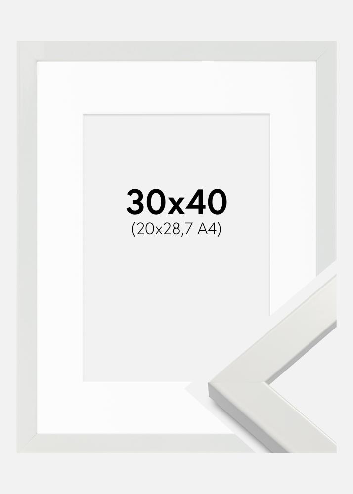 Rahmen White Wood Glossy 30x40 cm - Passepartout Weiß 21x29,7 cm (A4)