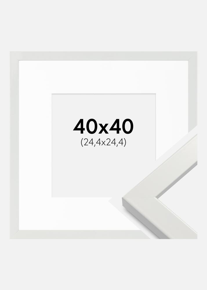 Rahmen White Wood Glossy 40x40 cm - Passepartout Weiß 10x10 inches