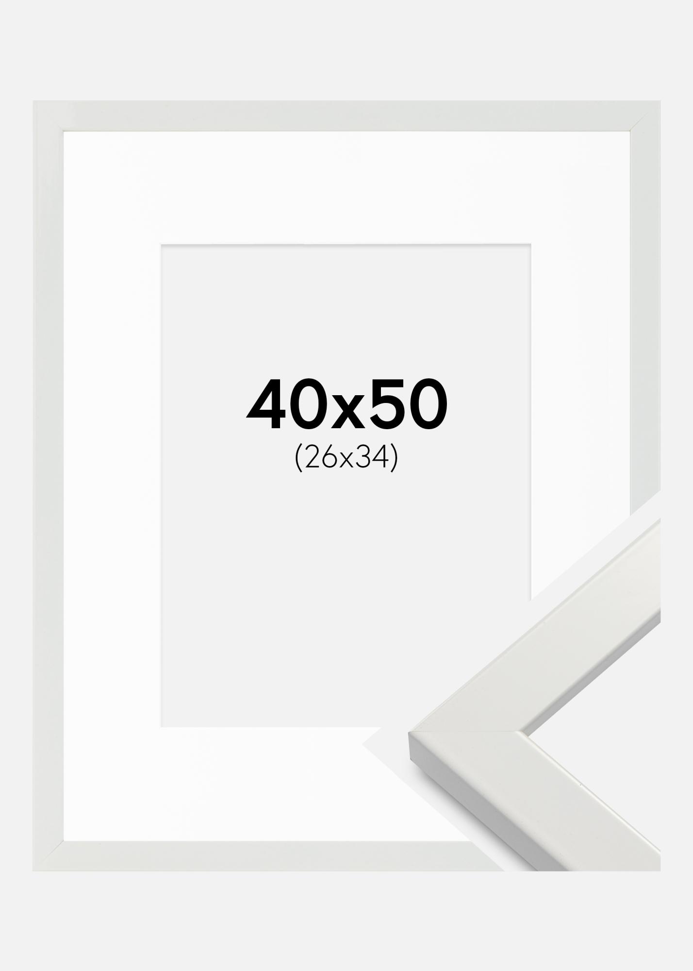 Rahmen White Wood Glossy 40x50 cm - Passepartout Weiß 27x35 cm