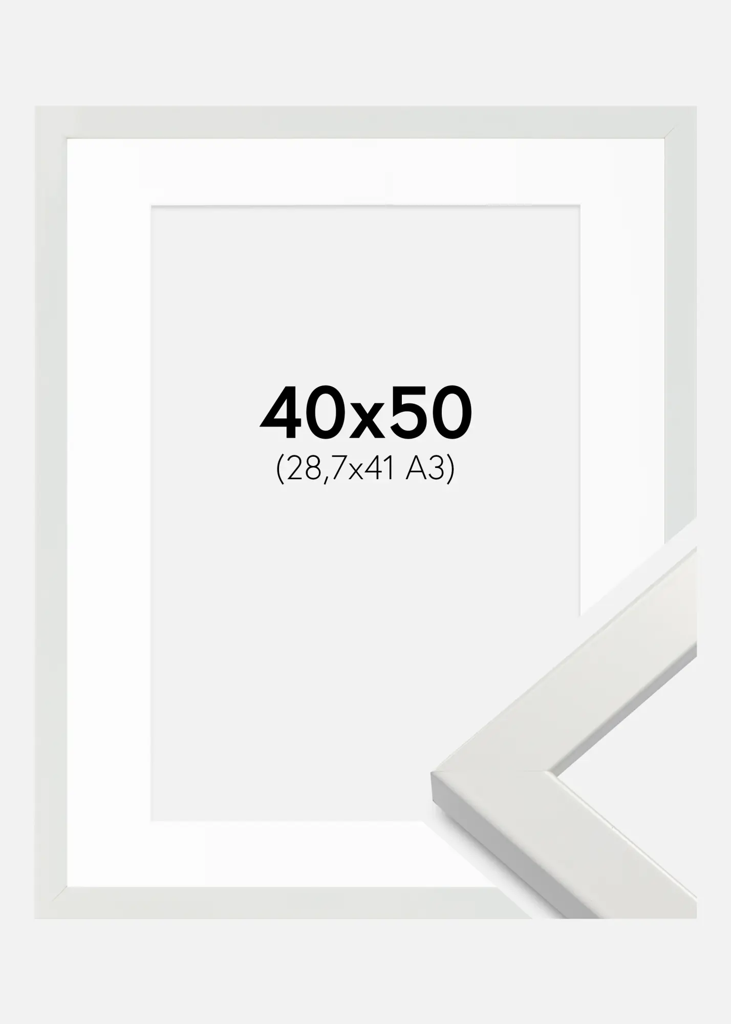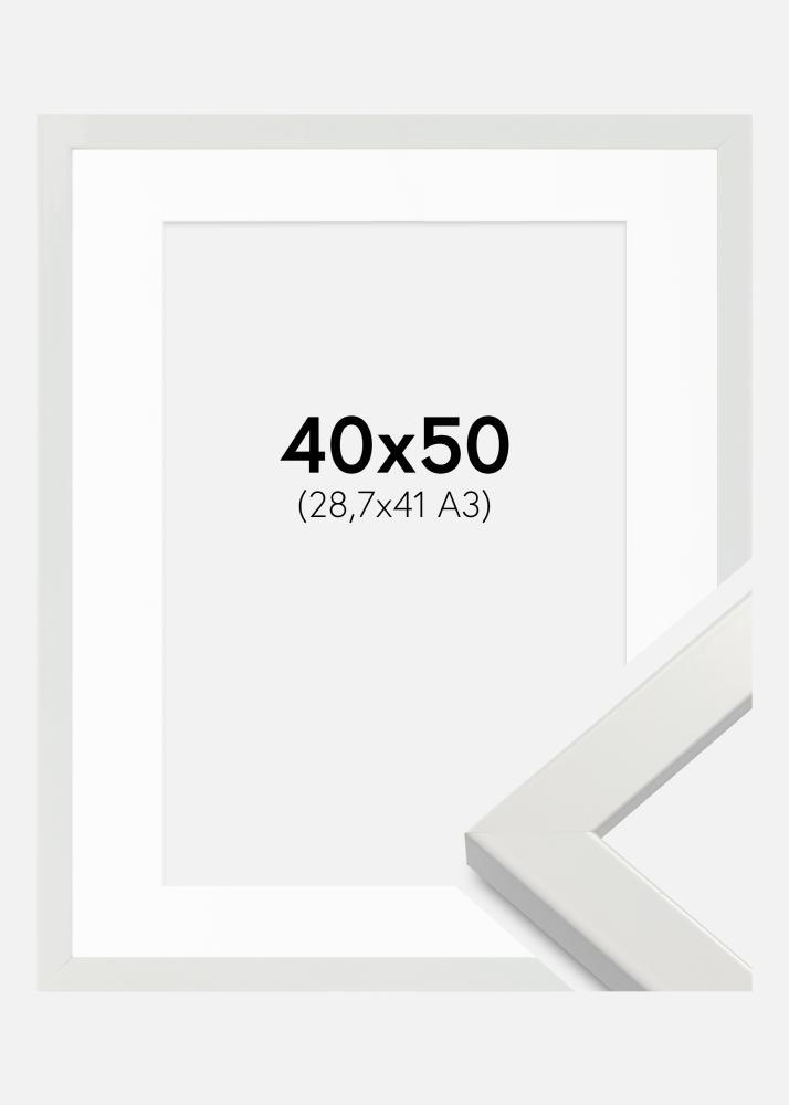 Rahmen White Wood Glossy 40x50 cm - Passepartout Weiß 29,7x42 cm (A3)