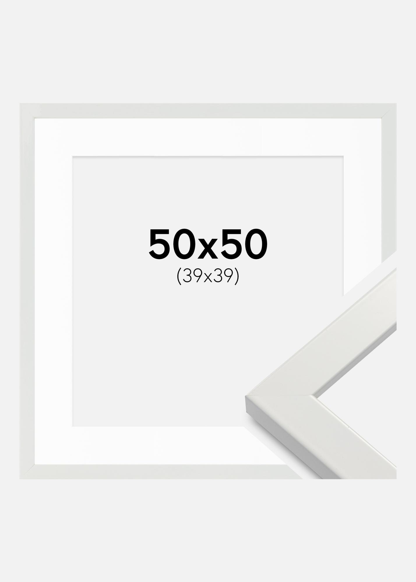 Rahmen White Wood Glossy 50x50 cm - Passepartout Weiß 40x40 cm