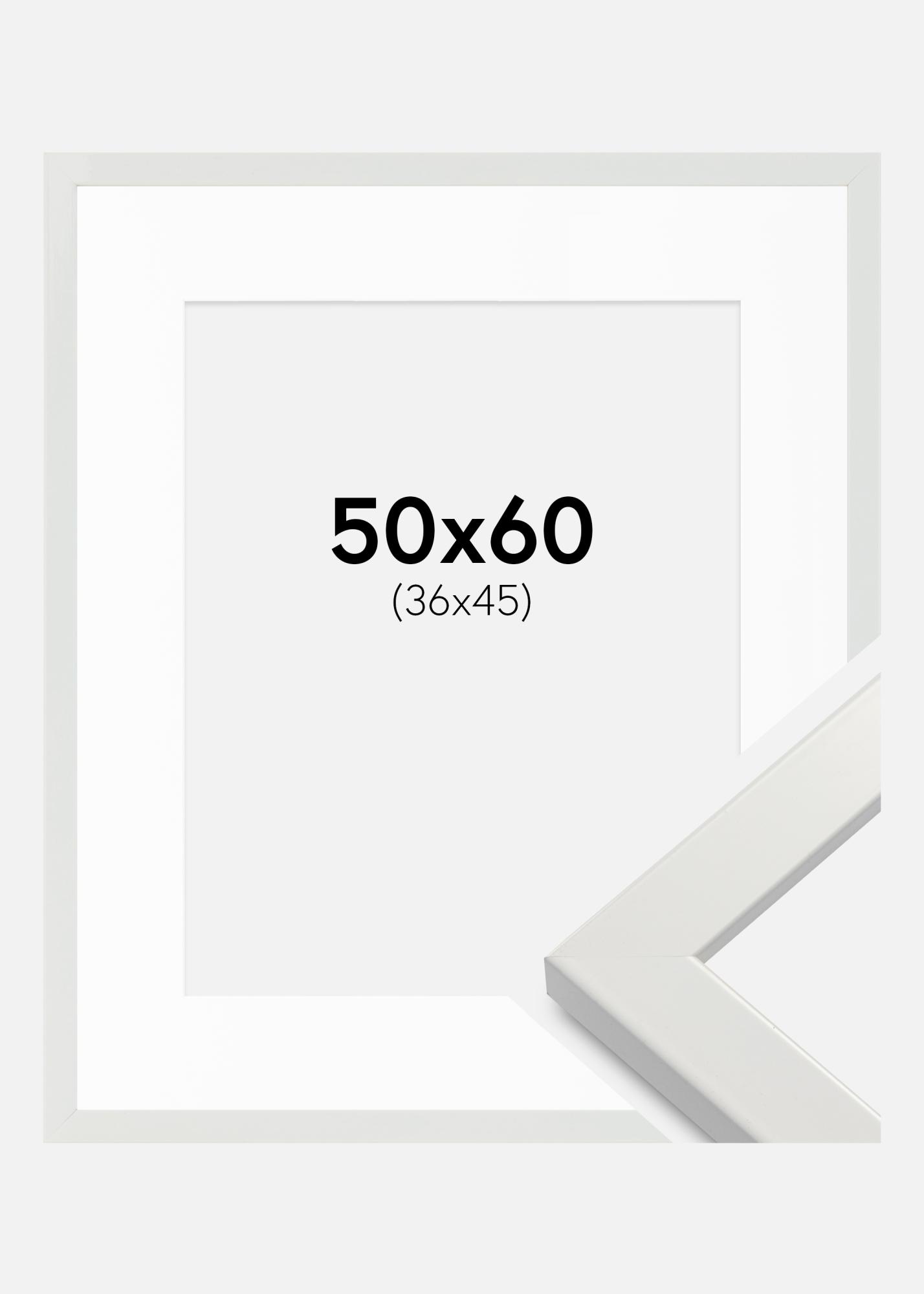 Rahmen White Wood Glossy 50x60 cm - Passepartout Weiß 37x46 cm