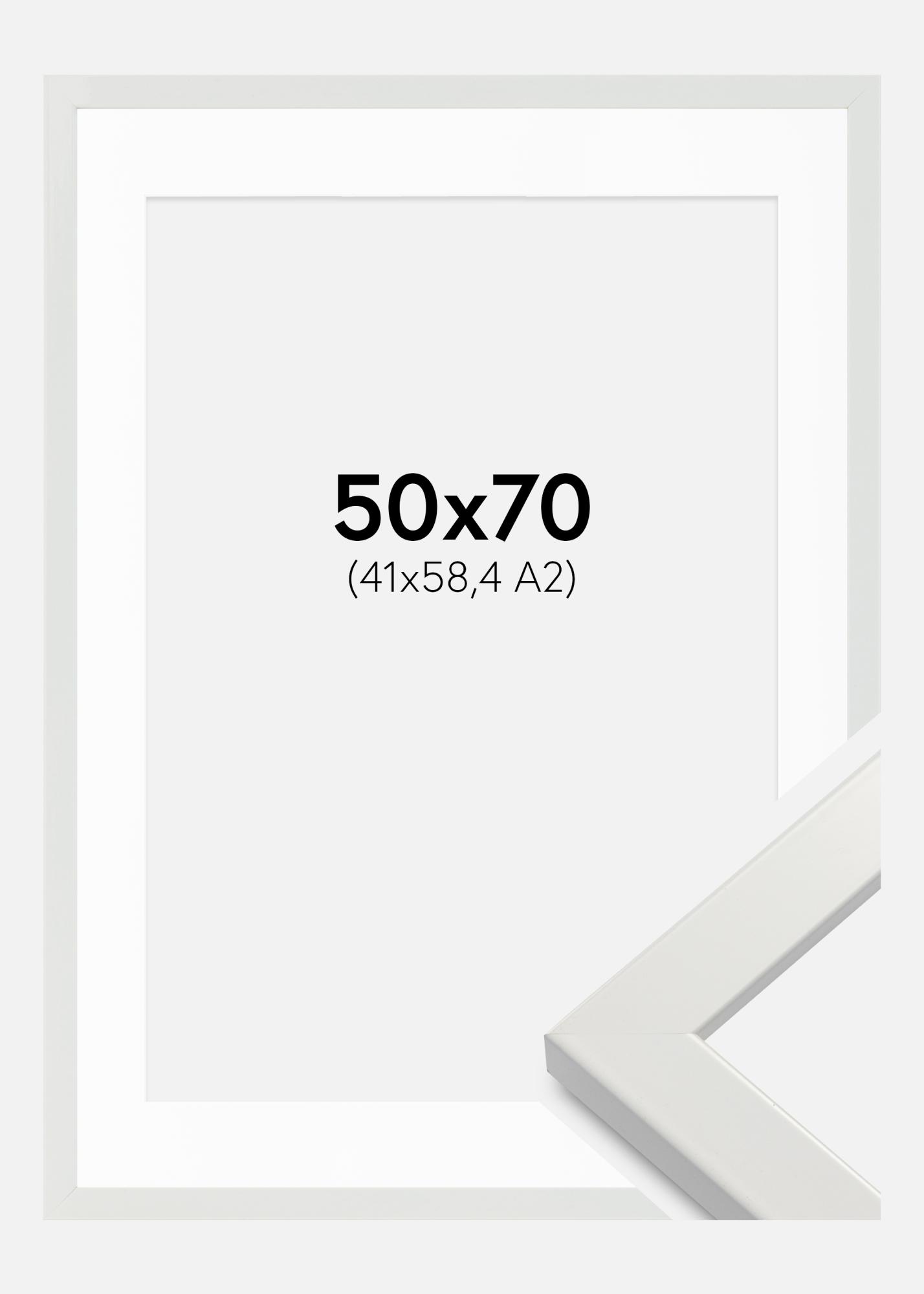 Rahmen White Wood Glossy 50x70 cm - Passepartout Weiß 42x59,4 cm (A2)