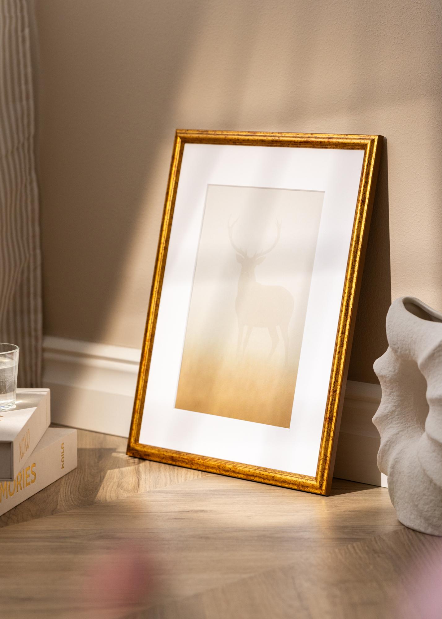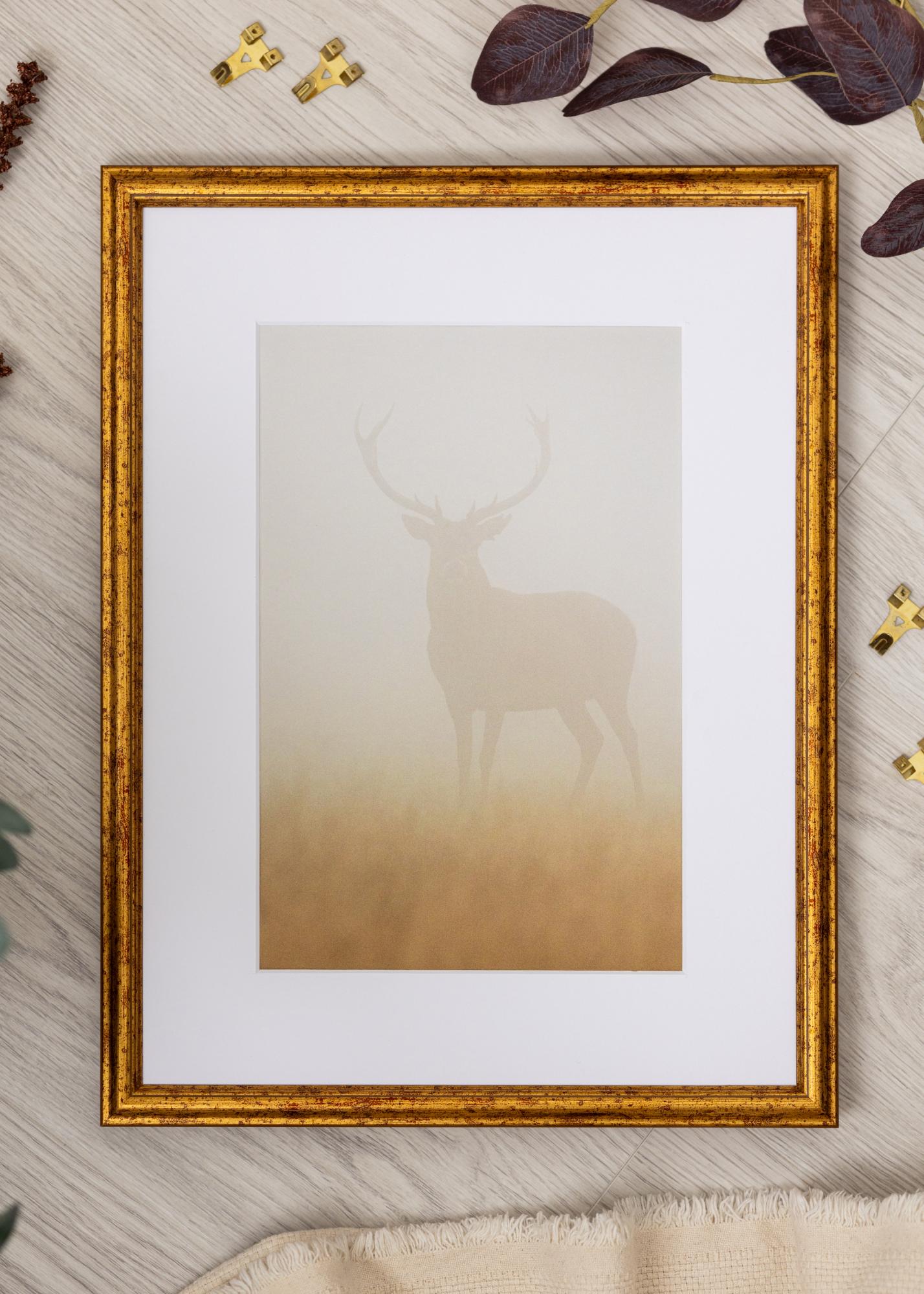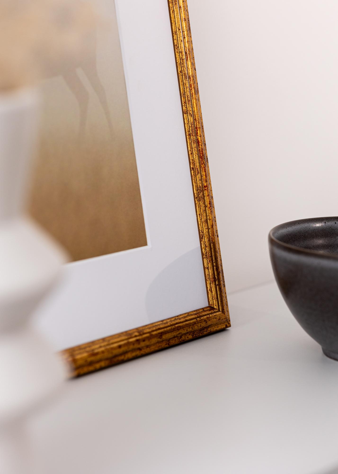 Dieser elegante Fotorahmen in Gold ist eine perfekte Kombination aus klassischem Design und moderner Funktionalität. Mit einer Größe von 50x70 cm ist er ideal, um Ihre Lieblingsmotive hervorzuheben, egal ob traditionell oder modern. Die antikgoldene Oberfläche mit subtiler Patina verleiht dem Rahmen einen rustikalen Charme und fügt Ihrem Zuhause einen Hauch von Eleganz und Geschichte hinzu.