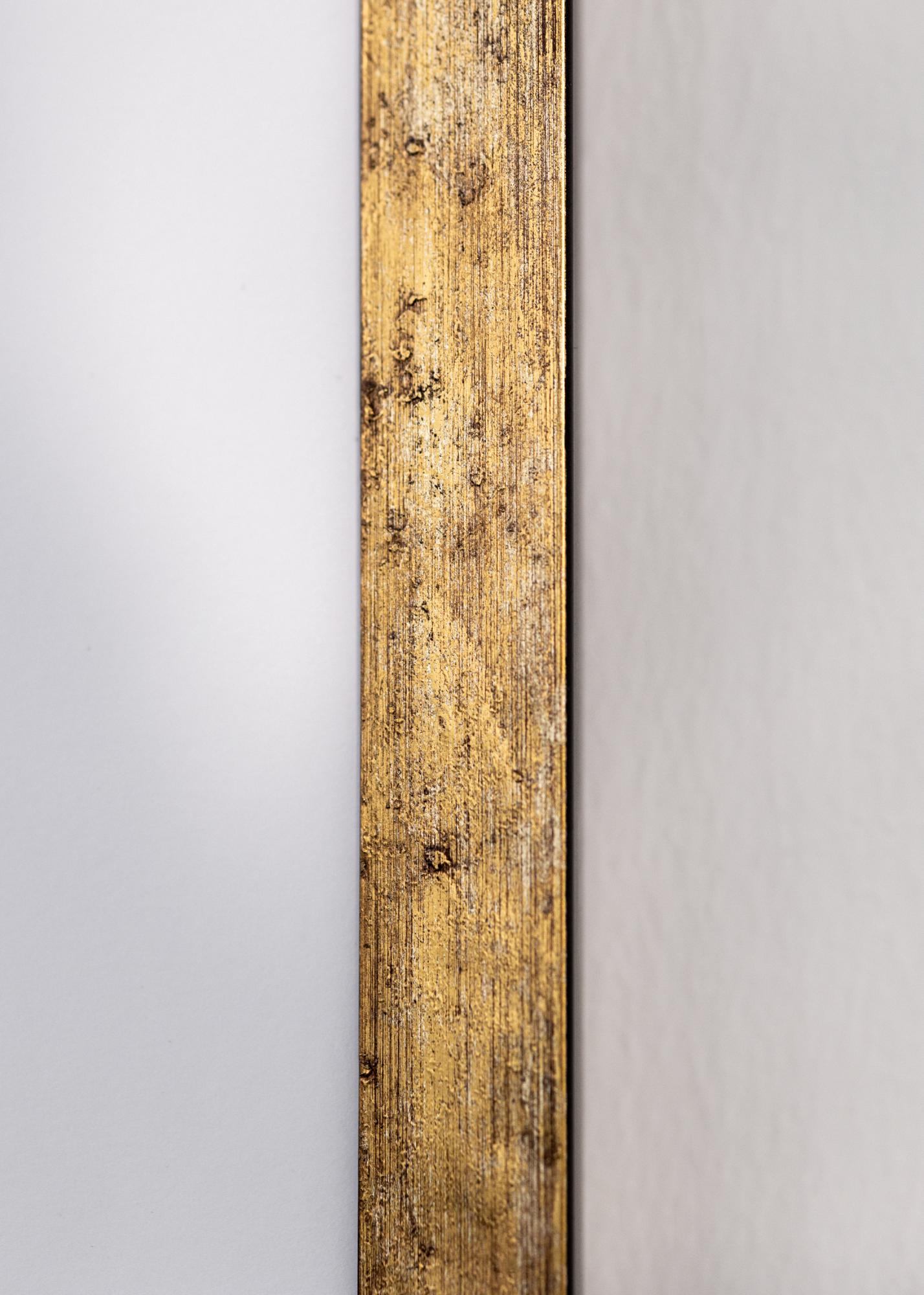 Dieser elegante goldene Bilderrahmen ist eine perfekte Kombination aus Vintage-Feeling und moderner Funktionalität. Mit seiner gealterten Goldoptik und der subtil rauen Oberfläche bietet er einen rustikalen und zeitlosen Charme, der jeden Raum aufwertet. Der Rahmen ist aus Holz gefertigt und hat ein schmales Profil mit einer 20 mm breiten Rahmenleiste, was ihm ein anspruchsvolles Aussehen verleiht. Er ist ideal, um Kunstwerke oder Fotografien mit einem antiken Touch hervorzuheben.