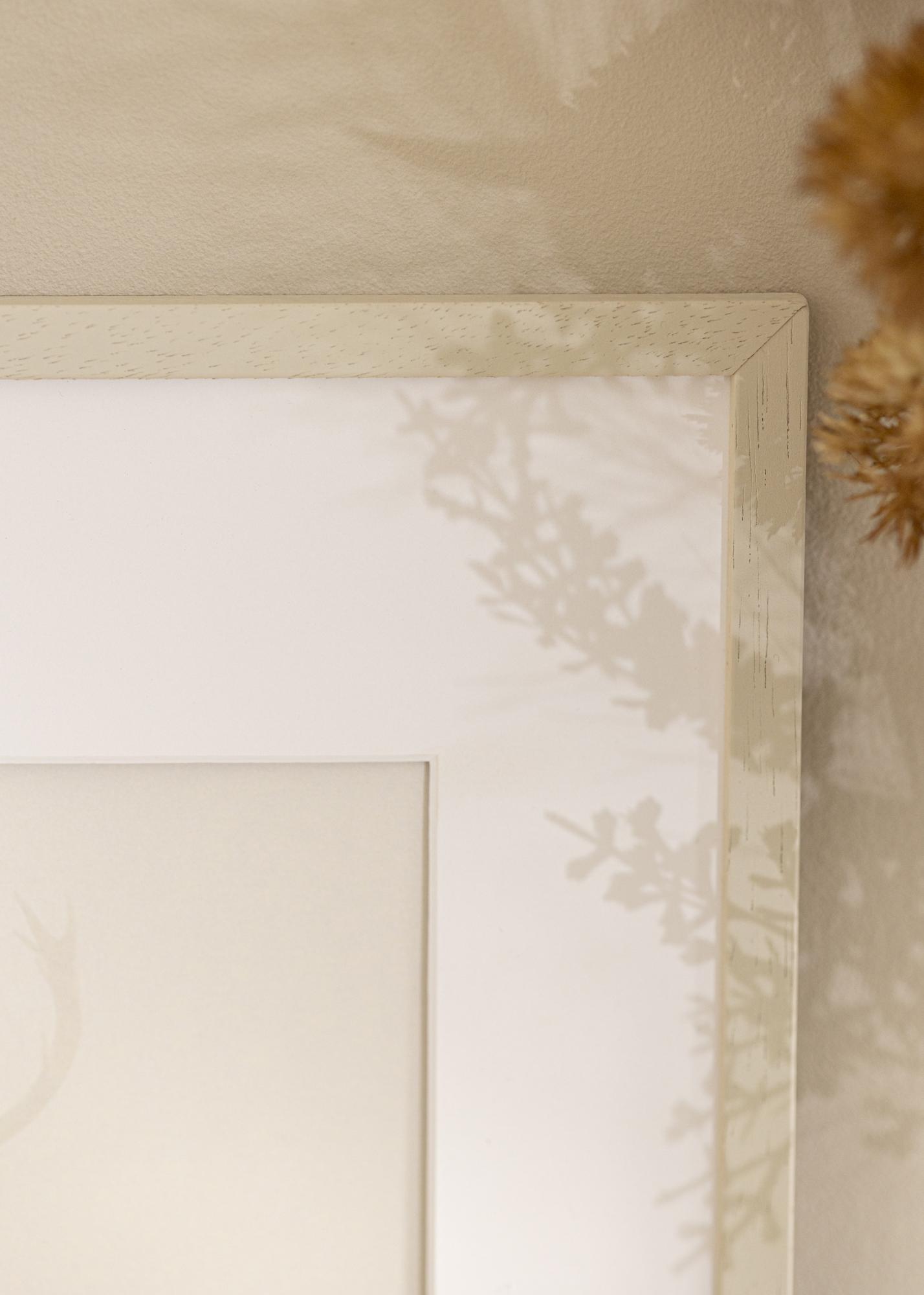 Geben Sie Ihren Wänden mit diesem eleganten Fotorahmen in der Größe 60x70 cm eine warme und einladende Atmosphäre. Der beige/sandfarbene Ton wird durch eine bemalte Oberfläche ergänzt, die die natürliche Holzstruktur betont und Ihrem Interieur ein authentisches und rustikales Aussehen verleiht.