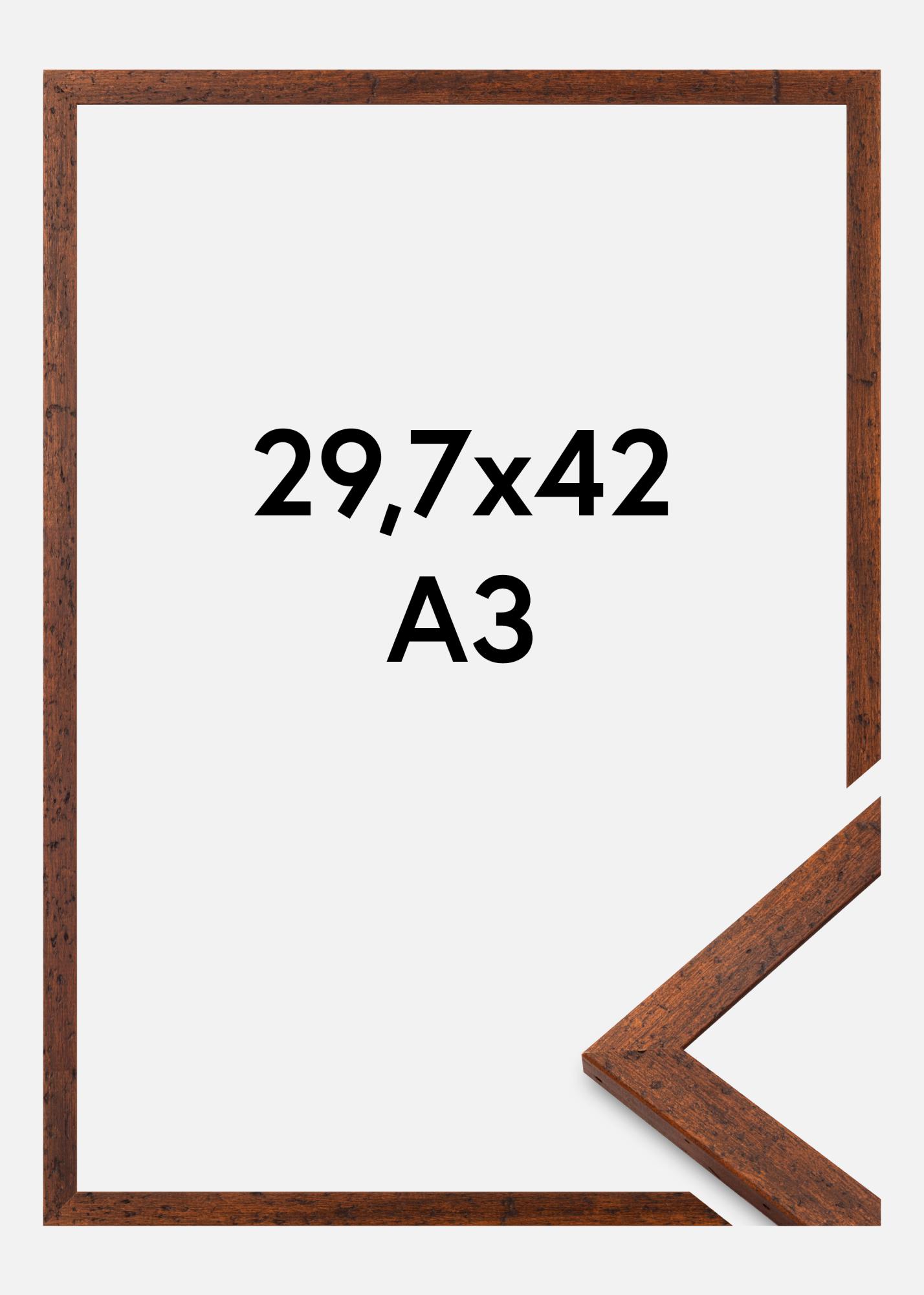 Diesen schönen Fotorahmen in der Größe 29,7x42 cm ist eine perfekte Kombination aus rustikalem Charme und zeitloser Eleganz. Hergestellt aus hochwertigem Holz, verfügt der Rahmen über eine warme braune Oberfläche, die die natürliche Holzmaserung betont. Die subtilen Rissdetails verleihen ihm ein authentisches Vintage-Gefühl, was ihn ideal macht, um sowohl ländliche als auch klassische Inneneinrichtungen zu ergänzen. Mit einer Rahmenleiste, die 13 mm breit ist und einer Tiefe von 34 mm, bietet dieser Bilderrahmen eine robuste und stabile Rahmung für deine Lieblingsfotos oder Kunstwerke.