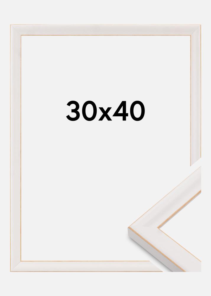 Dieser elegante Bilderrahmen in einem weichen, cremeweißen Farbton mit einem dünnen Goldrand ist eine perfekte Kombination aus Stil und Funktionalität. Mit einer Rahmenleiste, die 20 mm breit und 16 mm tief ist, bietet dieser Bilderrahmen eine stabile und robuste Einrahmung für deine Lieblingsfotos. Der Rahmen ist aus Holz gefertigt und hat ein leicht gebogenes Profil, das ihm ein elegantes und zeitloses Design verleiht. Das dezente Golddetail entlang der Innenkante verleiht ein exklusives Gefühl und rahmt deine Kunstwerke oder Fotografien auf elegante Weise ein.