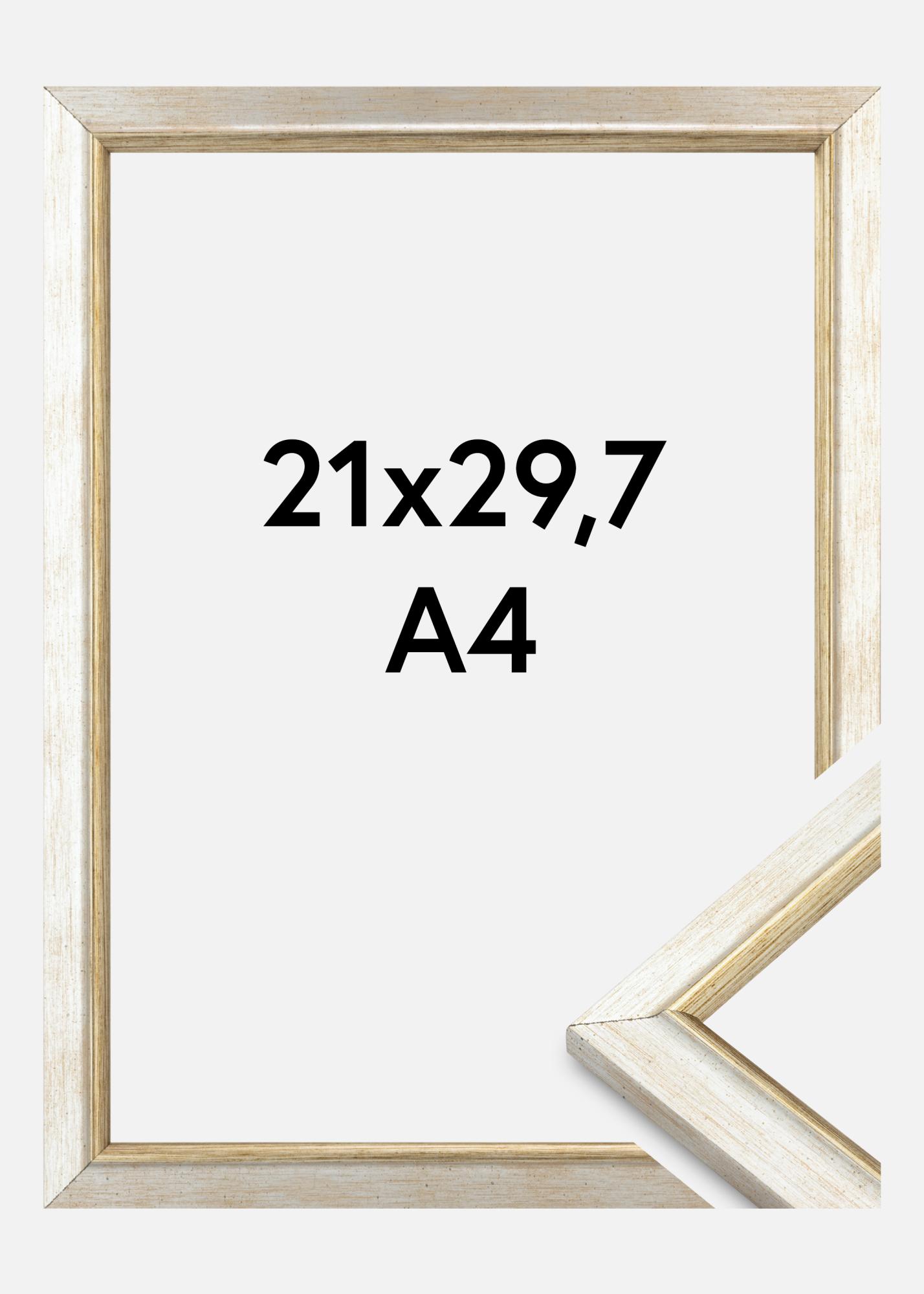 Dieser elegante Bilderrahmen in der Größe 21x29,7 cm (A4) ist eine perfekte Kombination aus modernem Design und klassischem Charme. Hergestellt in Italien, bietet dieser Rahmen einen hellen Silberton mit einer subtil gebürsteten Oberfläche, die Ihren Bildern und Kunstwerken einen Hauch von Raffinesse verleiht. Die leicht gealterte Oberfläche fügt ein zeitloses Gefühl hinzu, was ihn ideal macht, sowohl Fotografien als auch Kunstwerke hervorzuheben.