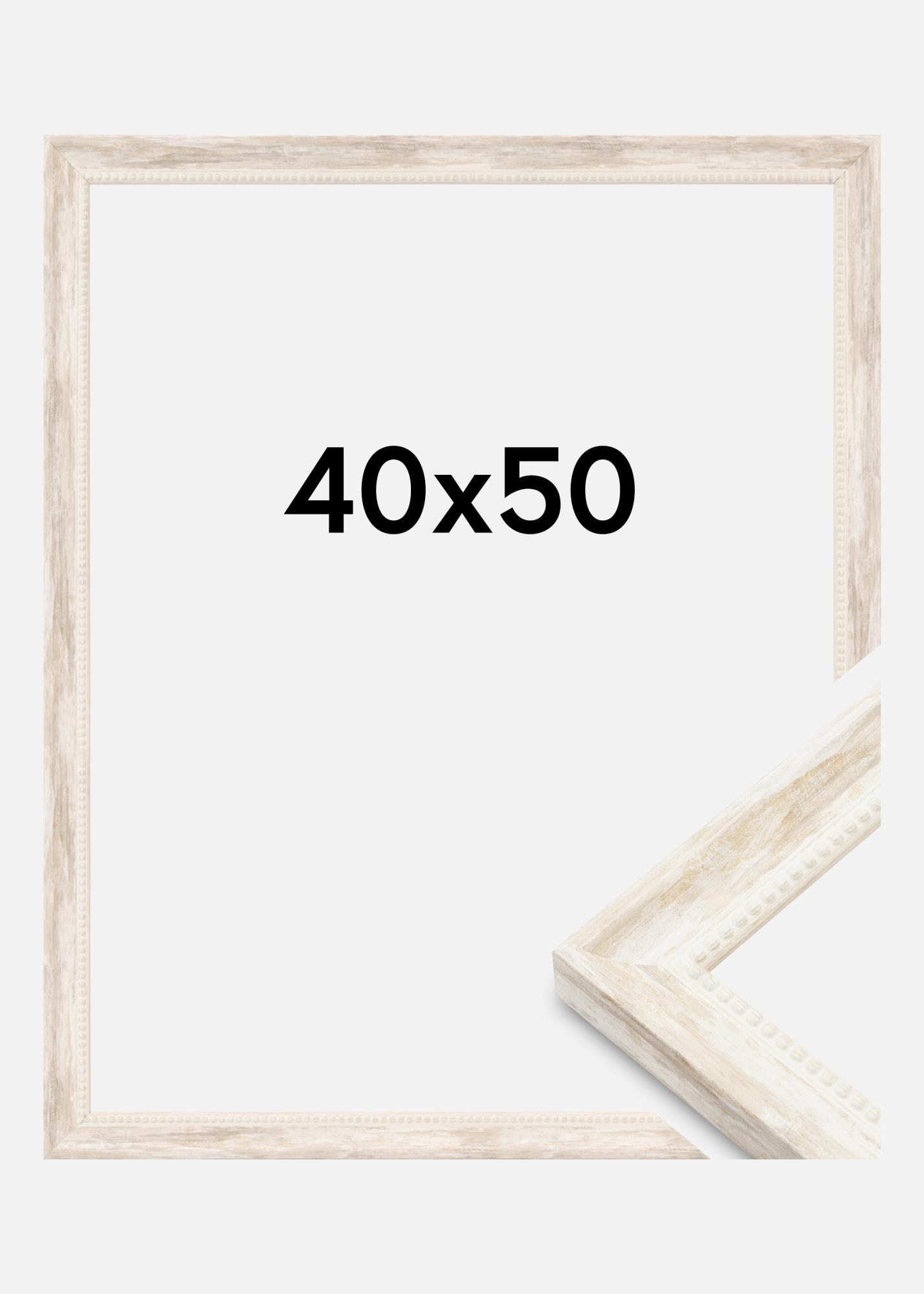Dieser wunderschöne Bilderrahmen in weißer Farbe ist eine perfekte Kombination aus rustikalem Charme und stilvoller Eleganz. Mit seinen Maßen von 40x50 cm ist er ideal, um Ihre Lieblingsmotive hervorzuheben, sei es Kunstwerke oder Fotografien. Der Rahmen verfügt über eine dekorative Perlenkante auf der Innenseite, die ihm ein klassisches und detailreiches Design verleiht, das sowohl in moderne als auch traditionelle Innenräume passt.