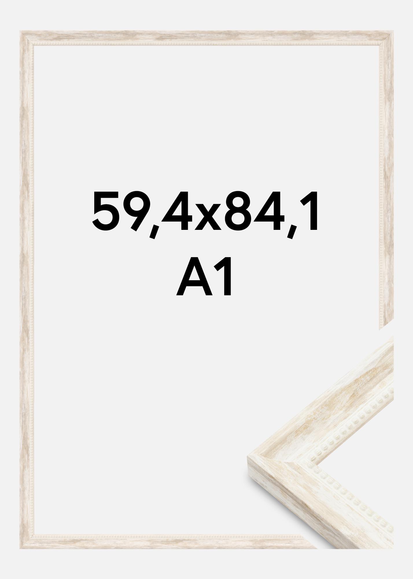 Diesen wunderschönen Bilderrahmen in der Größe 59,4x84,1 cm ist eine perfekte Kombination aus rustikalem Charme und stilvoller Eleganz. Mit seiner weißen Farbe und der dekorativen Perlrand entlang der Innenseite bietet er eine subtile antike Note, die sowohl Kunstwerke als auch Fotografien aufwertet. Dieser Bilderrahmen ist aus Holz gefertigt und hat eine 25 mm breite Leiste sowie eine Tiefe von 19 mm, was ihm ein robustes und solides Gefühl verleiht.