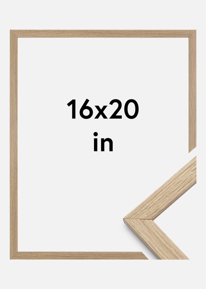 Ein toller Holzrahmen in stilvollem Eiche-Farbton. Dieser Bilderrahmen in der Größe 16x20 inches (40,64x50,8 cm) kann sowohl im Hochformat als auch im Querformat aufgehängt werden. Die Bilderrahmenleiste mit einer Breite von 20 mm und einer Tiefe von 14 mm ist aus folierter Kiefer gefertigt. Dieser schöne Holzrahmen in Eiche-Optik bildet ein stilsichere Einrahmung für nahezu jedes Bildmotiv und überzeugt durch sein ansprechendes, naturnahes Design.