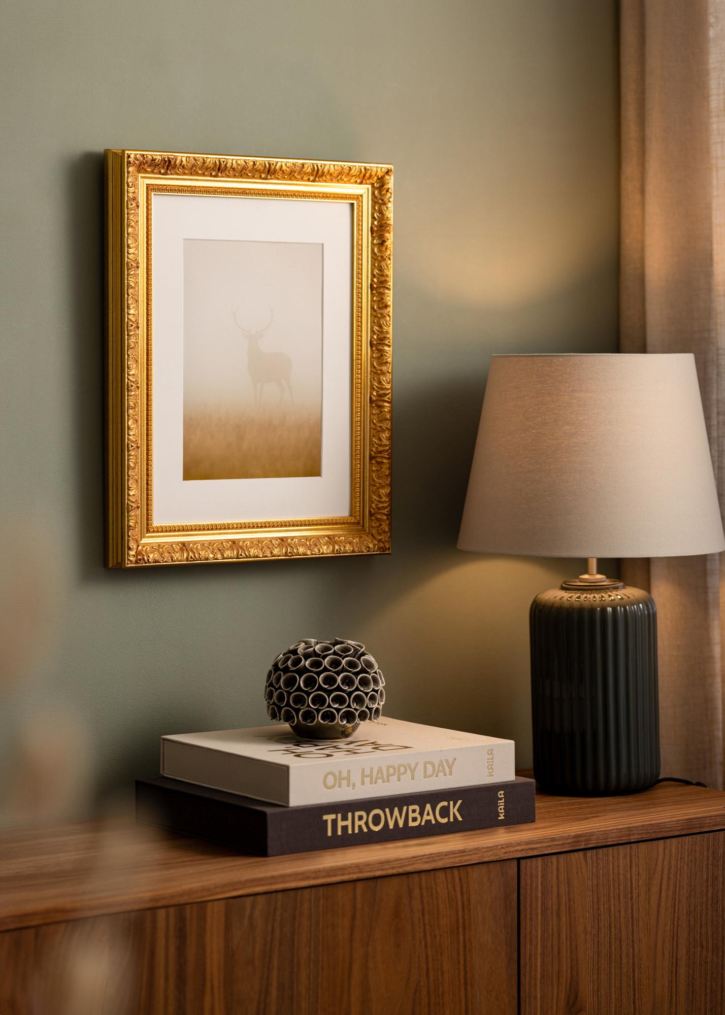 Zusammenfassend ist Rahmen Vesta Gold eine ausgezeichnete Wahl für diejenigen, die ihren Bildern eine anspruchsvolle Einrahmung geben möchten. Sein reicher Goldton und sorgfältig gestaltete Details machen ihn zu einer stilvollen Ergänzung in jedem Zuhause. Bestellen Sie Ihren maßgefertigten Fotorahmen noch heute und erleben Sie den Unterschied, den ein wunderschön gestalteter Rahmen für Ihre wertvollsten Bilder machen kann.