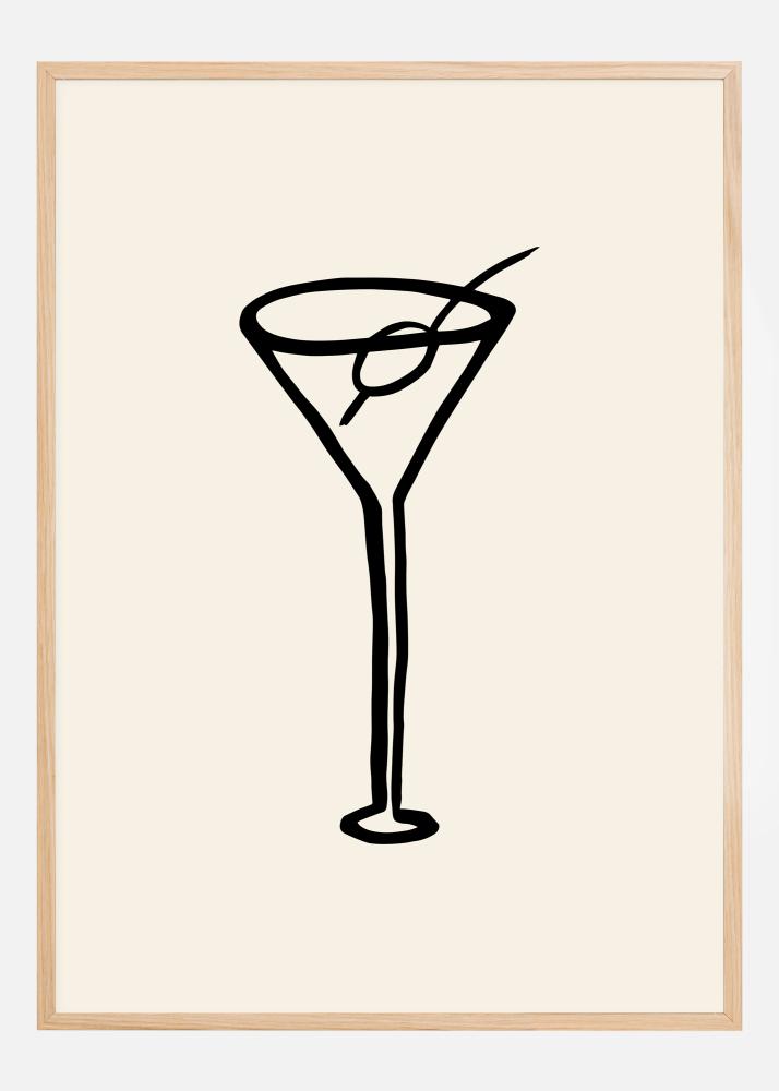 Ein einfaches Poster mit einem Cocktailglas und einer Olive darin. Holen Sie sich das James-Bond-Feeling an die Wand, indem Sie diese einfache schwarze Strichzeichnung eines Martiniglases aufhängen. Kombinieren Sie es mit einer kräftigen Wandfarbe, damit diese starke Zeichnung zur Geltung kommt. Sind Sie geschüttelt, nicht gerührt?