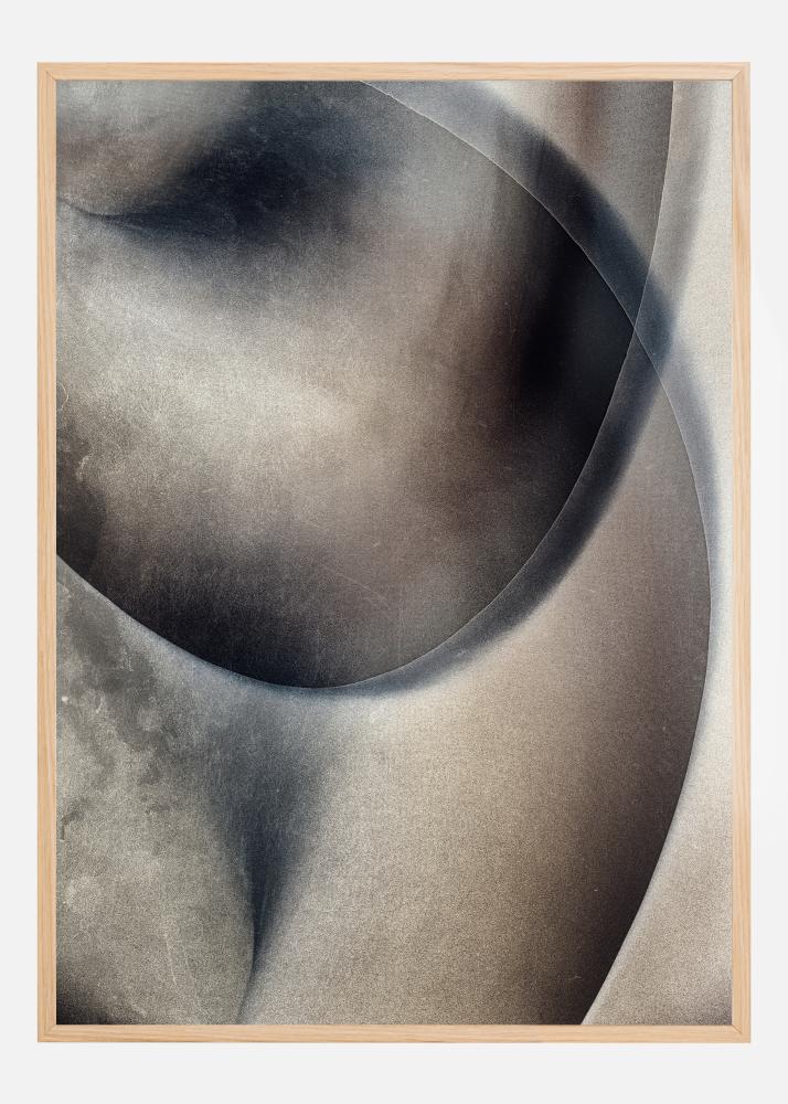 Ein Poster mit einer Nahaufnahme der Hüften und des Oberkörpers einer Frau. Dieses atemberaubende abstrakte Bild zeichnet sich durch sanft verwaschene Blau- und Violetttöne aus, die die Linien des Körpers darstellen. Zusätzliche, stärker überlappende Formen heben Bereiche hervor. Genießen Sie dieses abstrakte Körperbild zu Hause.