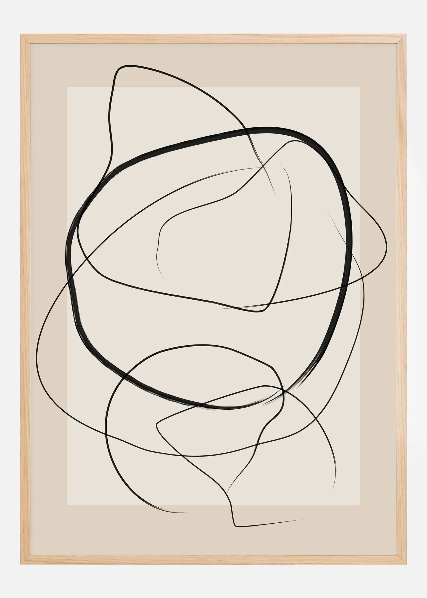 Dieses zeitgenössische Poster ist Teil unserer Kunstsammlung und zeigt eine Serie weicher, geschwungener Linien, die eine abstrakte und meditative Komposition bilden. Die schwarzen Linien fließen frei über den beigen Hintergrund und erzeugen ein Gefühl von Bewegung und Rhythmus, während sie den Betrachter zu einem Moment der Kontemplation einladen. Diese minimalistische, aber kühne Kunst ist perfekt für diejenigen, die die Kraft des abstrakten Ausdrucks schätzen, persönliche Interpretationen und innere Reflexionen zu eröffnen.