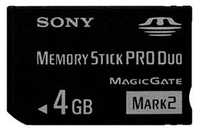 Rahmenberater starten »Memory Stick Pro Duo Mark 2 von Sony mit einer Speicherkapazität von 4 GB. Der Memory Stick ist in erster Linie für den Einsatz in Geräten von Sony vorgesehen.