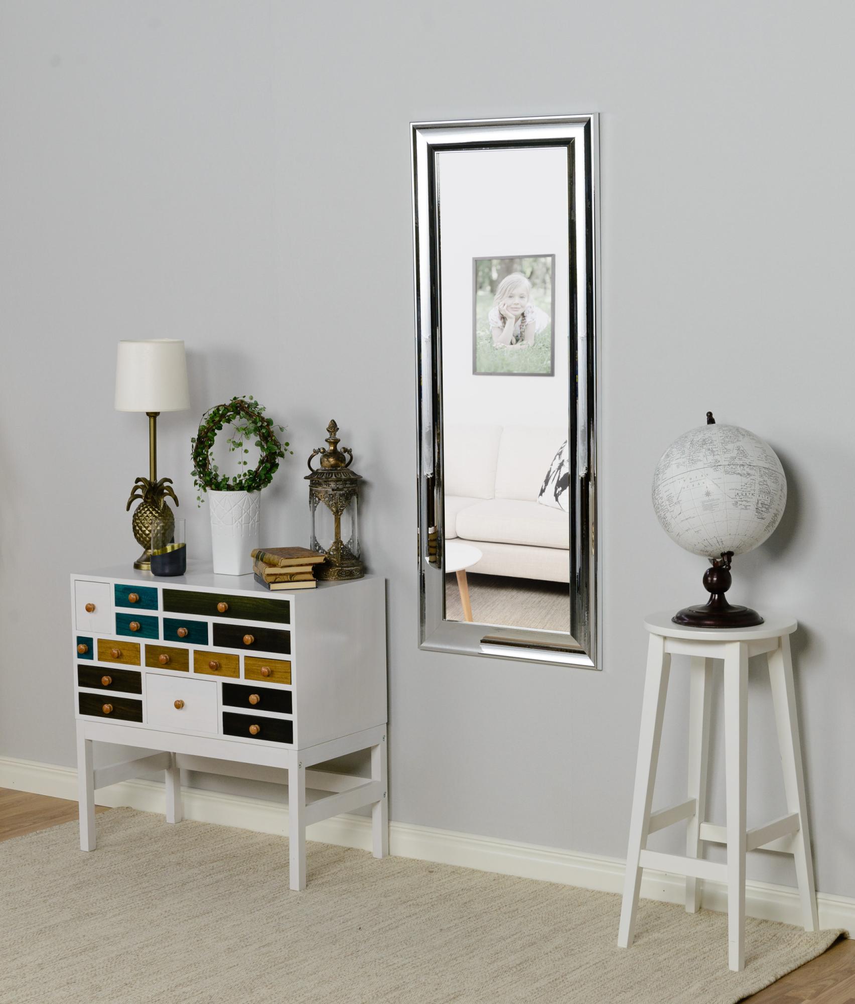 Spiegel Denise Chrom wurde aus FSC-zertifiziertem Holz in Italien hergestellt. In den Größen 50 x 70 cm, 60 x 80 cm, 40 x 120 cm, 70 x 100 cm, 40 x 140 cm, 50 x 150 cm und 60 x 150 cm erhältlich.