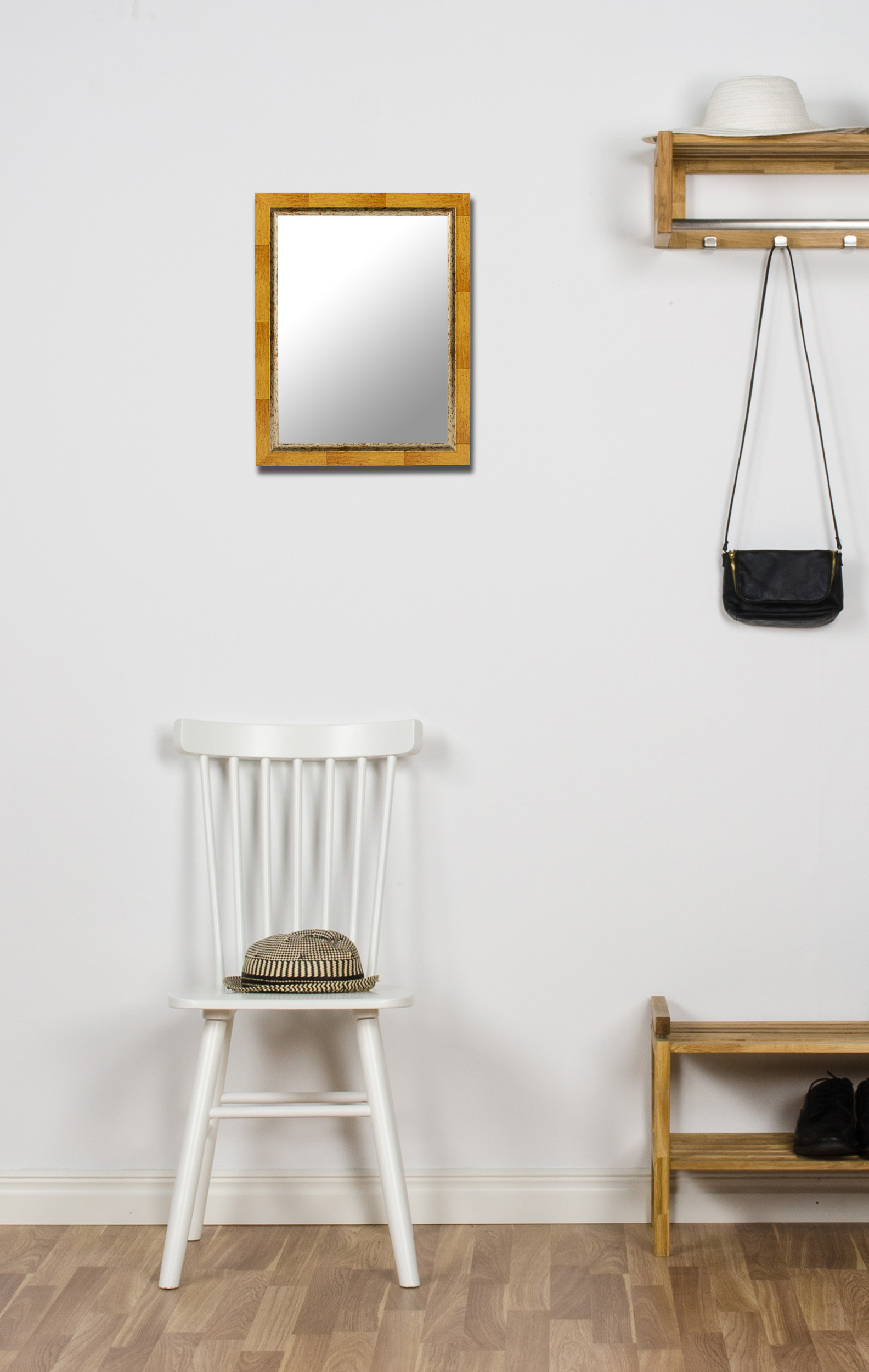 Einige der elegantesten Spiegel sind in Färila entworfen worden! Hier haben wir ein wunderschönes Exemplar, das wir nach Ihren Wünschen in unserer eigenen Rahmenwerkstatt eigens für Sie anfertigen. Der Spiegel hat einen flachen Holzrahmen mit abgenutzten Partien, die ihm seinen einzigartigen Charakter verleihen. An der breitesten Stelle können Sie ein diskretes symmetrisches Muster erkennen.