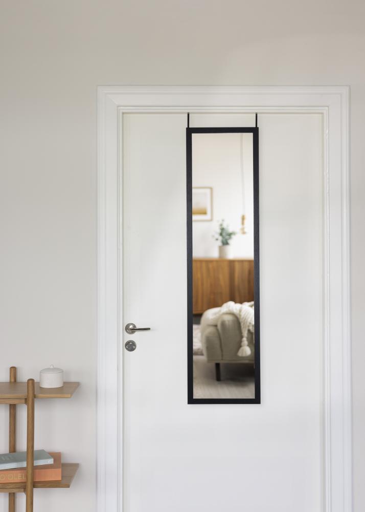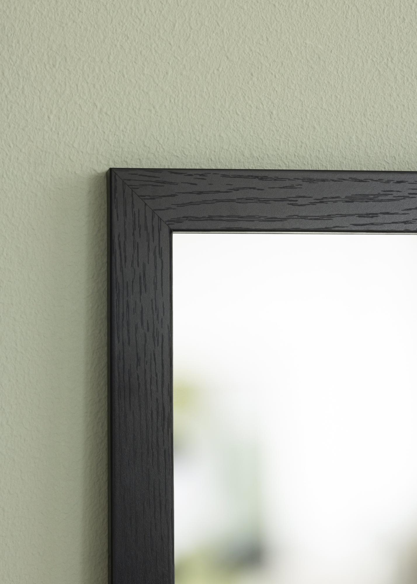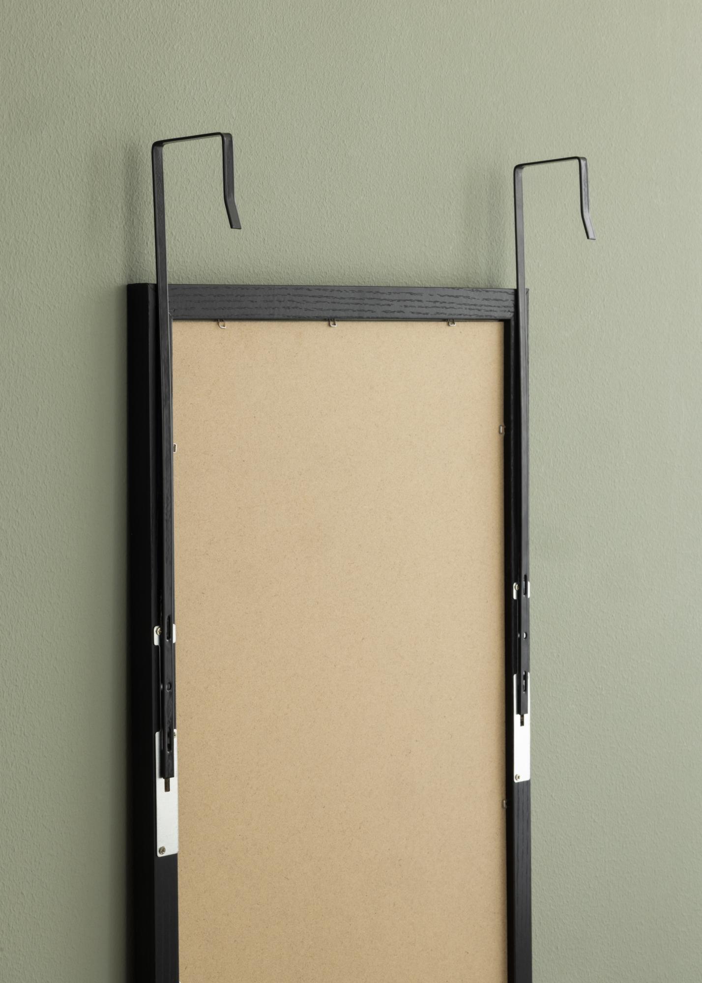 Dieser Türspiegel hat einen schlanken und modernen Holzrahmen in Schwarz, der ein warmes und natürliches Gefühl vermittelt. Die matte Oberfläche lässt den Spiegel dezent wirken und bringt gleichzeitig Struktur und Charakter in den Raum.