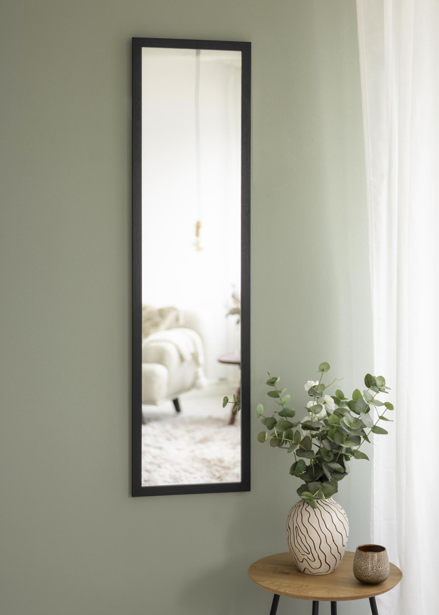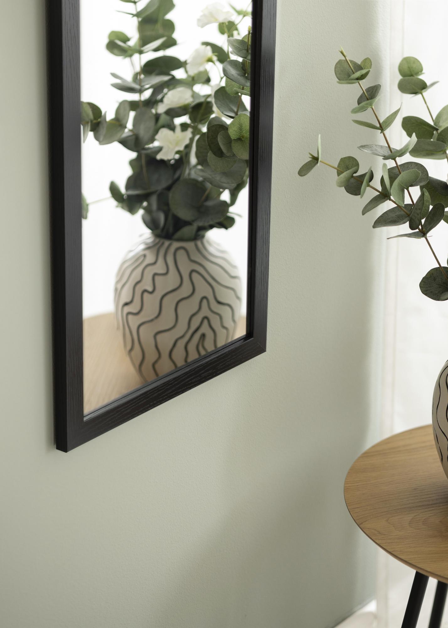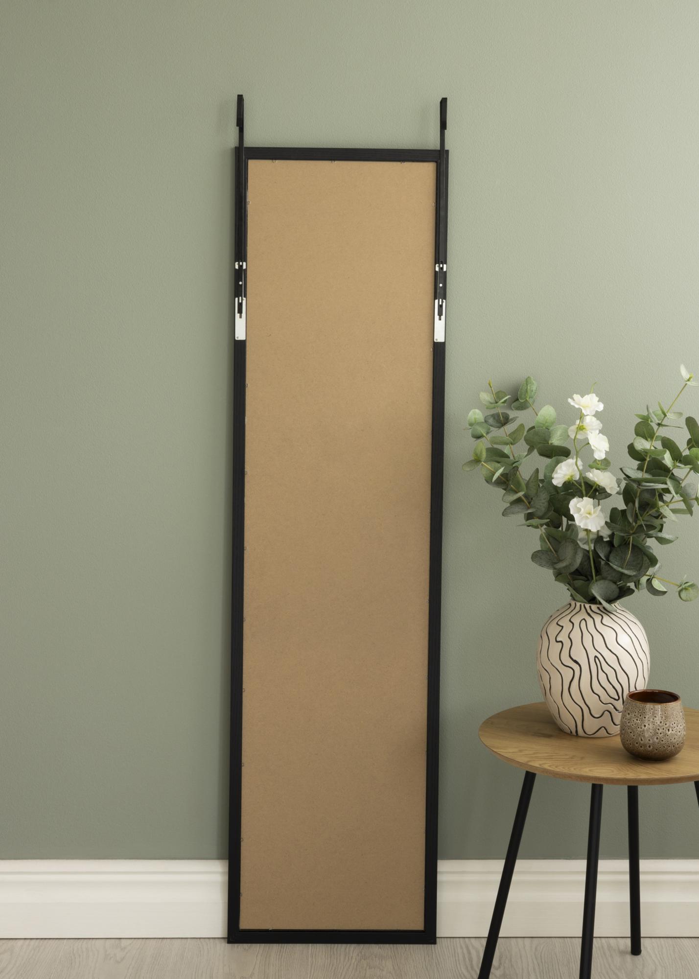 Dieser Türspiegel hat einen schlanken und modernen Holzrahmen in Schwarz, der ein warmes und natürliches Gefühl vermittelt. Die matte Oberfläche lässt den Spiegel dezent wirken und bringt gleichzeitig Struktur und Charakter in den Raum.