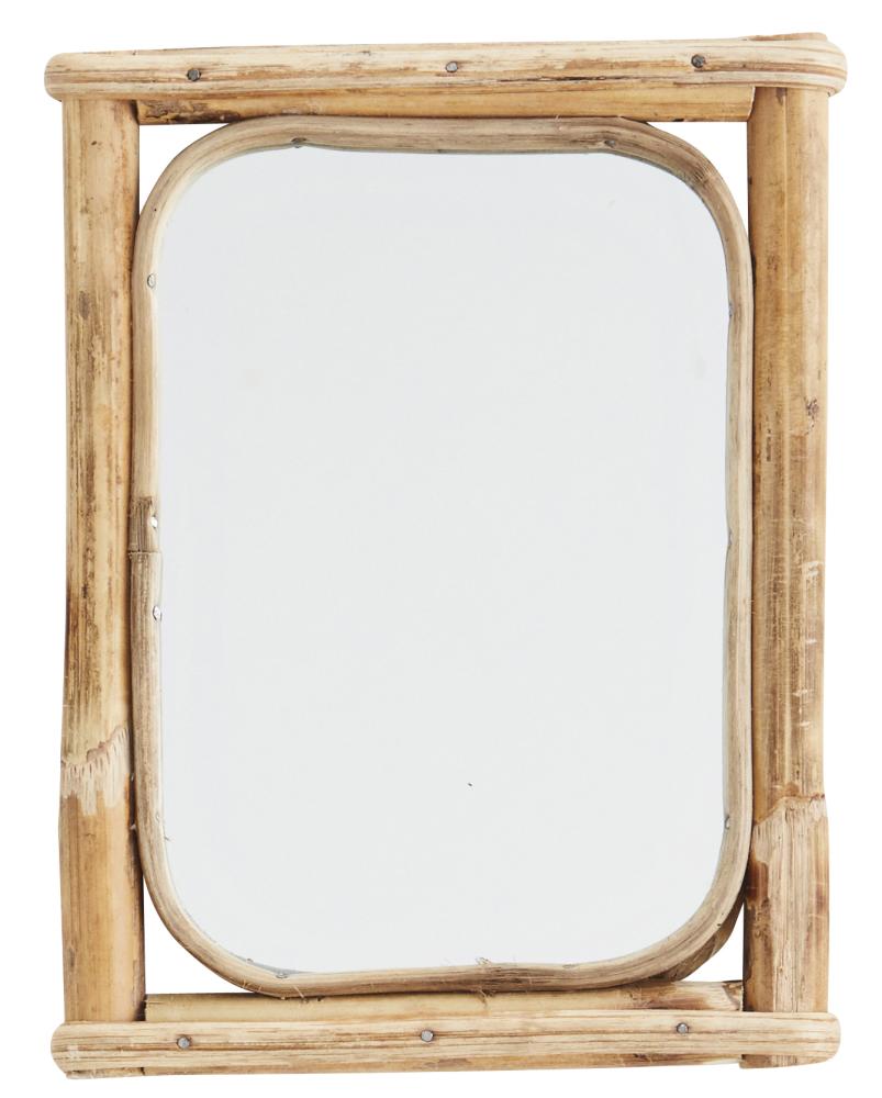 Schöner Spiegel von Madam Stoltz mit rustikalem Bambusrahmen. Der Spiegel ist im Bohemian-Style gehalten, der sowohl in traditionelle als auch unkonventionell eingerichtete Wohnungen passt. Der Wandspiegel ist quadratisch und misst 15×20,5 cm. Dank seiner zierlichen Größe lässt sich dieser Wandspiegel hervorragend mit anderen Spiegelmodellen kombinieren. Der Spiegel ist handgefertigt, was bedeutet, dass jeder einzelne Artikel im Aussehen leicht variieren kann.