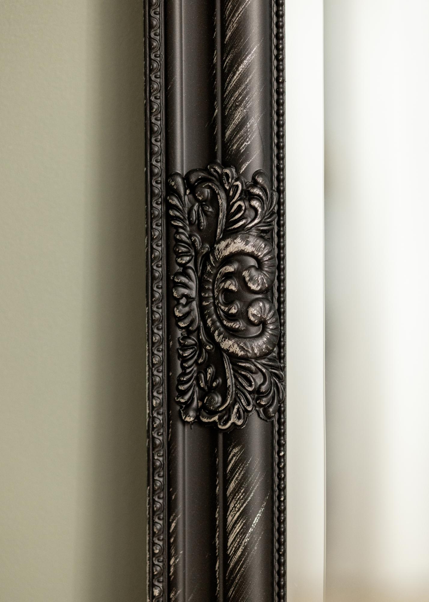 Entdecken Sie das elegante und raffinierte Design mit unserem stehenden Spiegel, perfekt dimensioniert auf 70x160 cm, um eine vollständige Reflexion zu bieten. Dieser Spiegel präsentiert eine stehende, rechteckige Form, die sowohl moderne als auch traditionelle Einrichtungsstile ergänzt. Der schwarze Rahmen ist sorgfältig gestaltet mit einem detaillierten Design, das jedem Raum eine luxuriöse Atmosphäre verleiht.