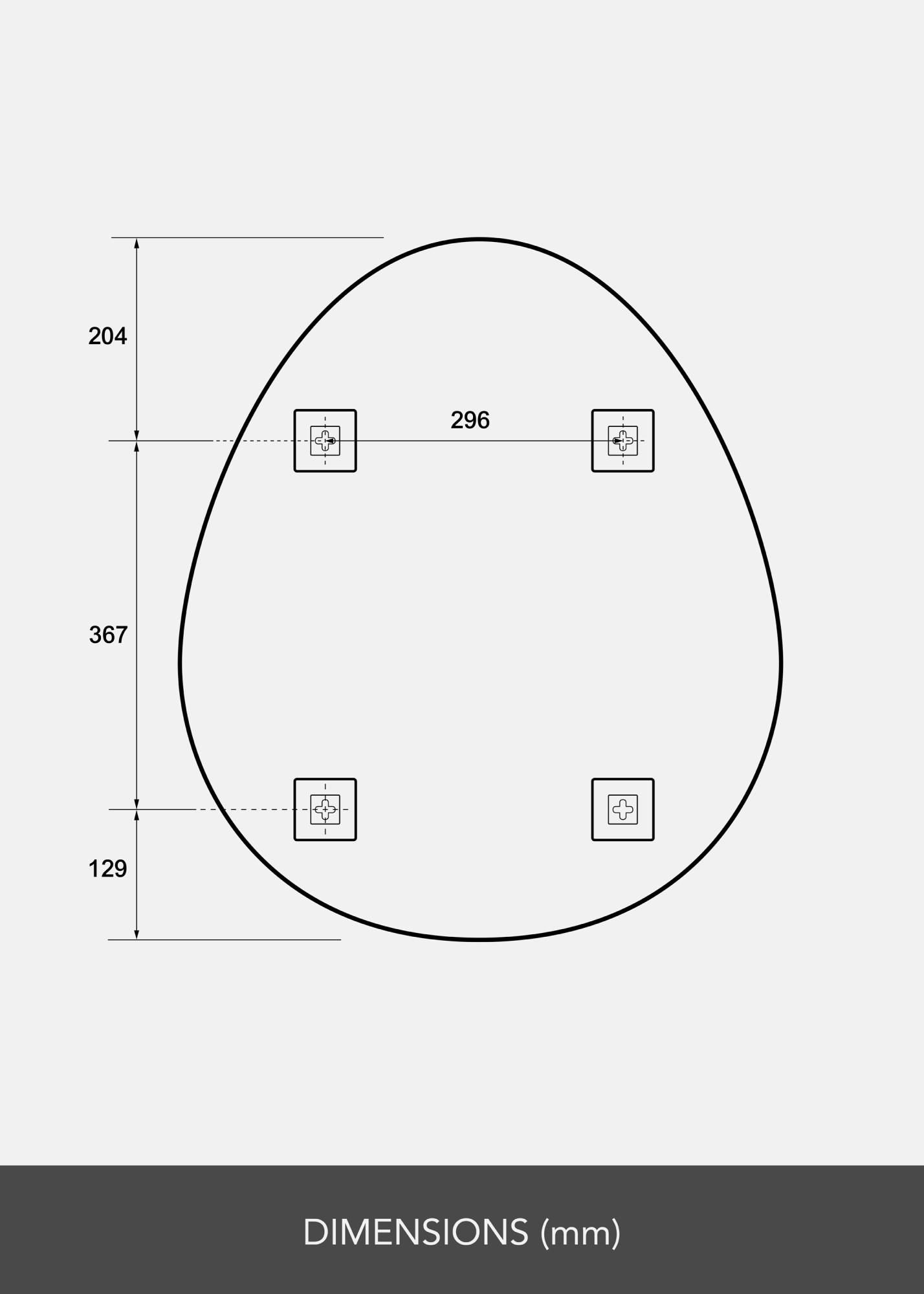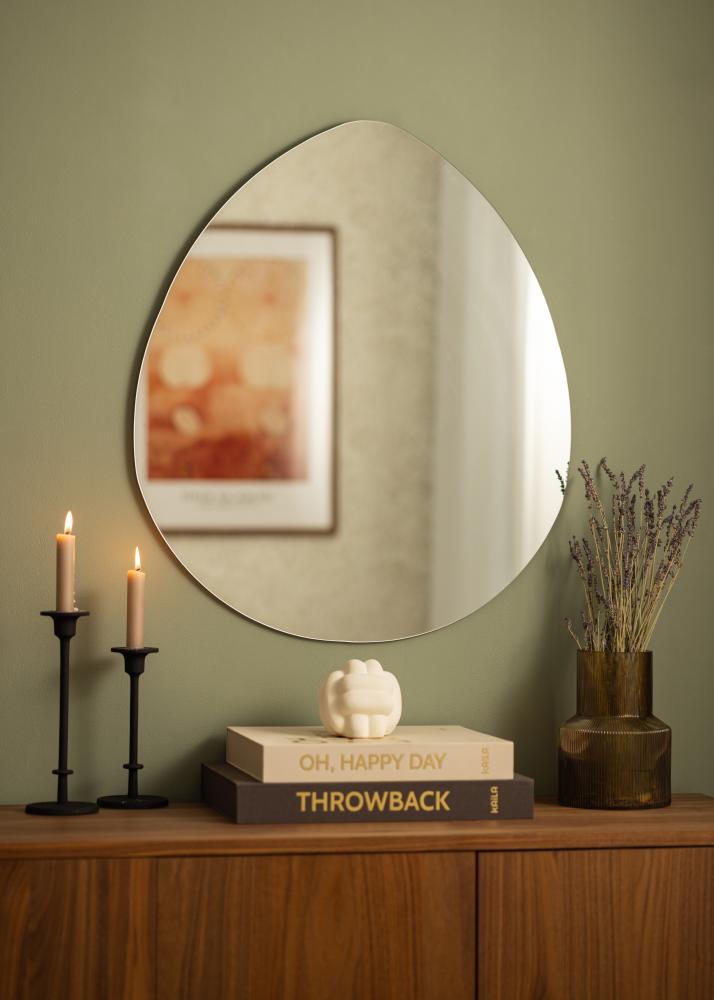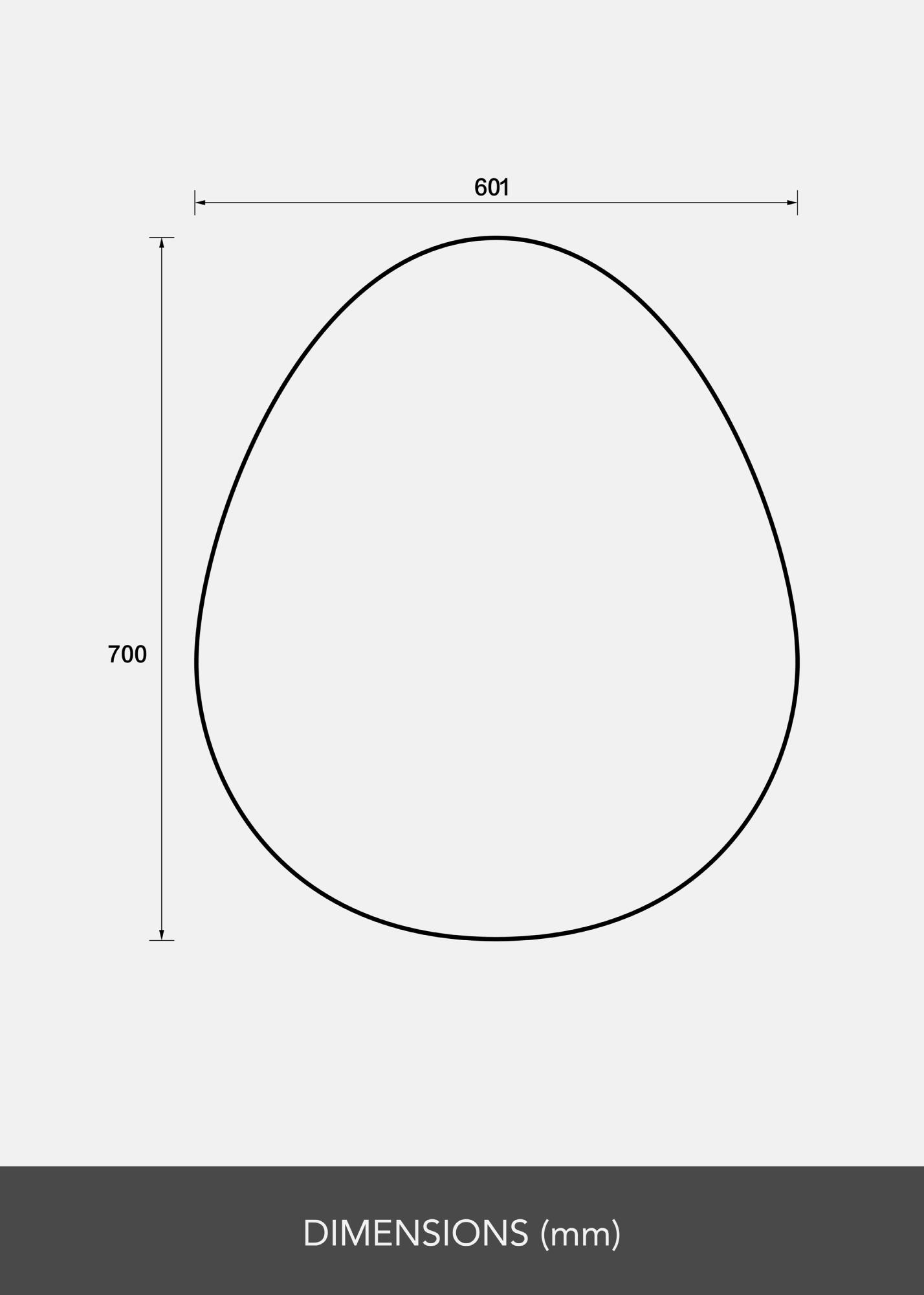 Der Spiegel hat eine runde, eiförmige Kontur mit einem flachen Boden, was eine weiche und moderne Ästhetik bietet. Seine einzigartige Form macht es zu einem Blickfang und einem interessanten Gesprächsstarter. Es ist nicht nur ein Spiegel, sondern auch ein Kunstwerk, das Ihr Zuhause verschönert.