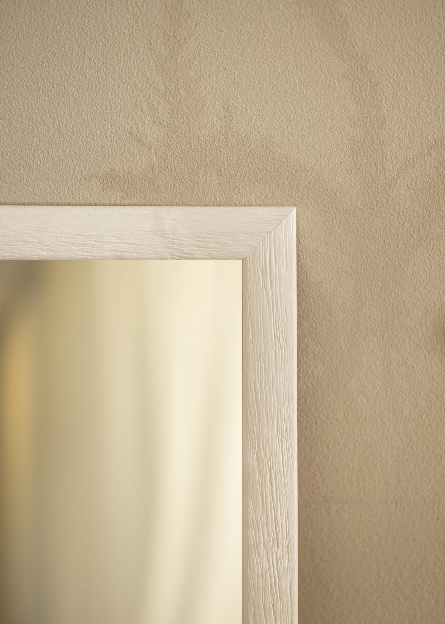 Der Rahmen des Spiegel Cornwall Weiß besteht aus Ayous-Holz, was ein authentisches und langlebiges Produkt bietet. Mit einer Rahmenleiste, die 23 mm breit und 13 mm tief ist, hat der Spiegel ein schmales Profil, das zu einem modernen und stilvollen Eindruck beiträgt. Das matte Finish dämpft Lichtreflexionen, wodurch der Spiegel gut mit der übrigen Einrichtung harmoniert, ohne den Raum zu dominieren.