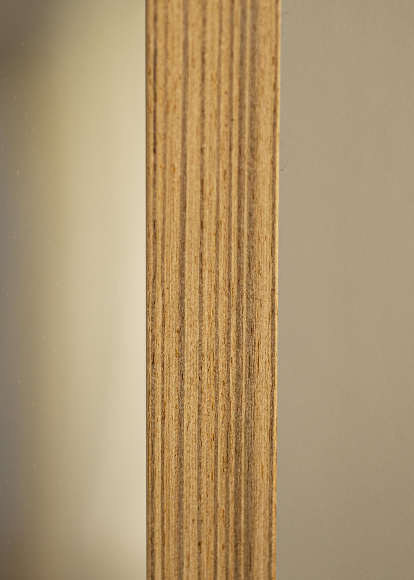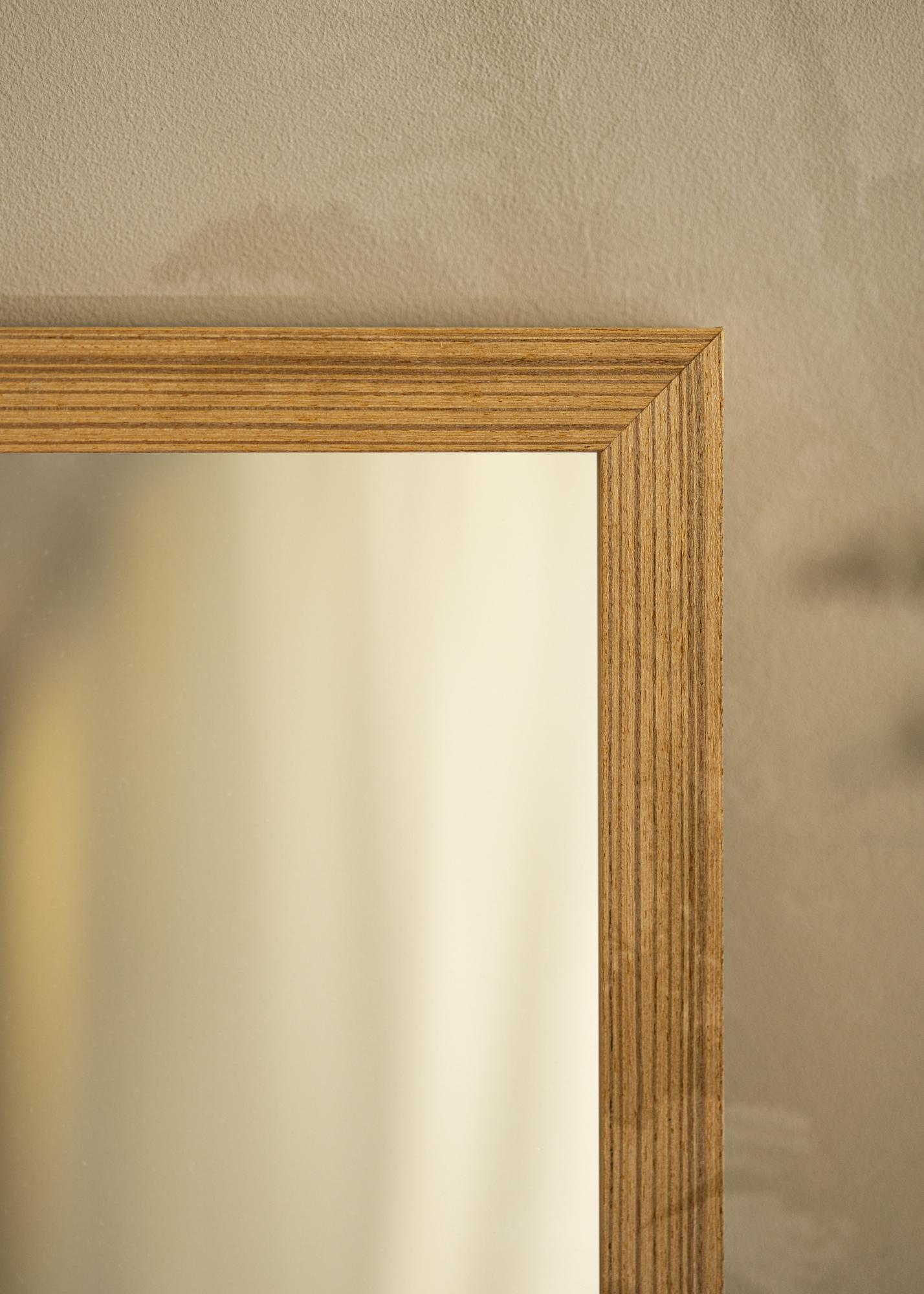 Der Rahmen des Spiegels ist 28 mm breit und hat eine Tiefe von 33 mm, was ein stabiles und robustes Gefühl vermittelt. Hergestellt aus Kiefernholz, bietet dieser Spiegel eine Haltbarkeit, die über die Zeit besteht. Die ausgeprägte Struktur im Rahmen schafft eine lebendige Tiefe und bietet eine taktile Dimension, die den Spiegel lebendig und dynamisch wirken lässt.