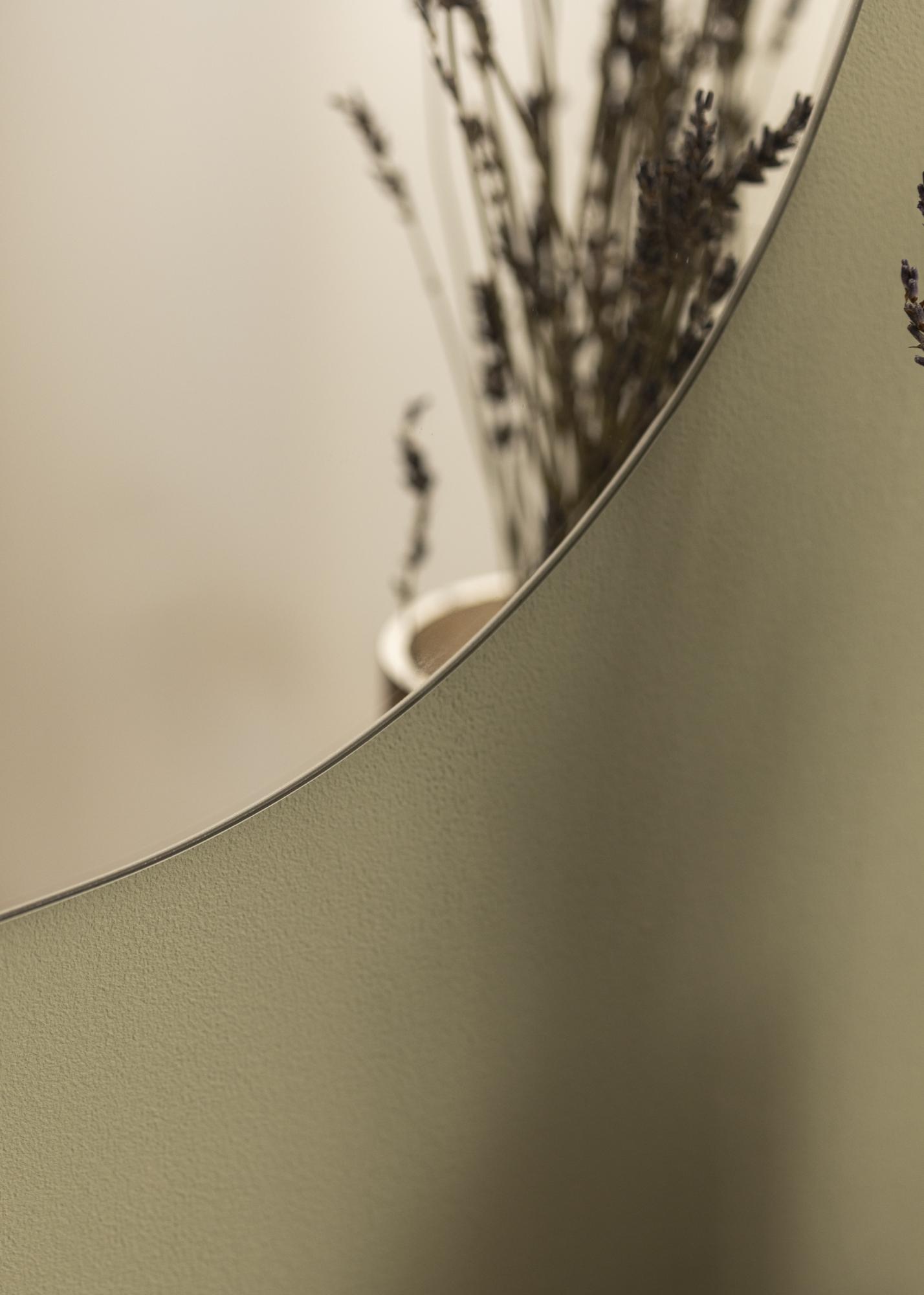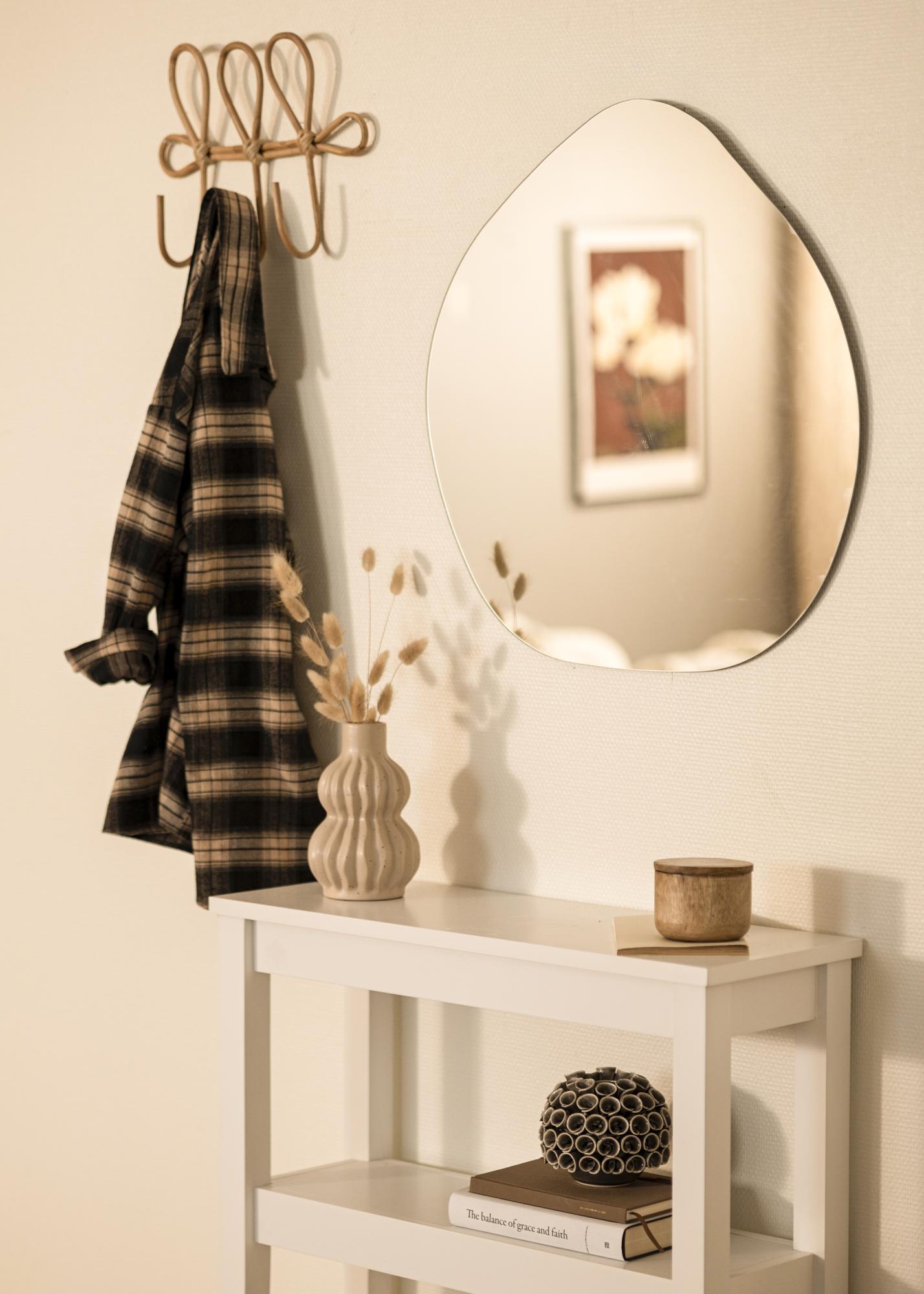 Dieser Spiegel ist vielseitig einsetzbar, da er sowohl im Hoch- als auch im Querformat aufgehängt werden kann. Dies gibt Ihnen die Freiheit, zu entscheiden, wie er am besten in Ihren Raum passt, egal ob es im Flur, Schlafzimmer oder Wohnzimmer ist. Die asymmetrische Form verleiht eine moderne Note, die verschiedene Einrichtungsstile ergänzt und eine interessante visuelle Wirkung schafft.