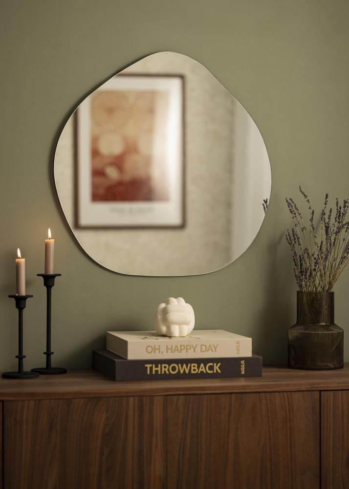 Entdecken Sie den einzigartigen Charme unseres asymmetrisch geformten Spiegels, ein echter Blickfang für jeden Raum. Mit seinen sanften Linien und modernem Design bietet dieser Spiegel die perfekte Balance zwischen Funktionalität und Stil. Die Maße von 60x60 cm machen ihn groß genug, um praktisch zu sein, während er gleichzeitig unauffällig an der Wand bleibt.