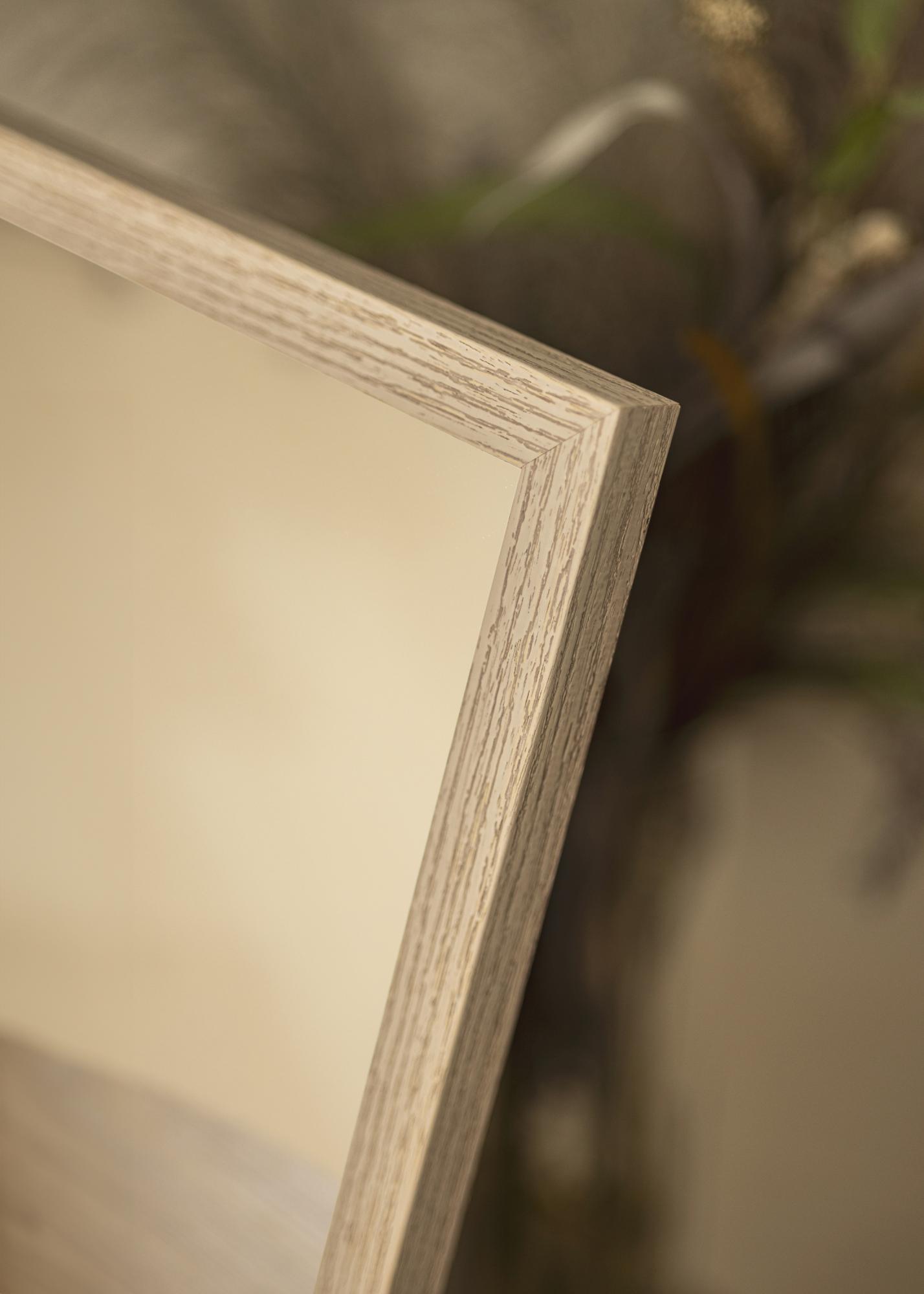 Der Rahmen des Spiegels ist 20 mm breit und hat eine Tiefe von 20 mm, was eine dezente, aber dennoch deutliche Einrahmung des Spiegelglases bietet. Hergestellt aus Ayous-Holz ist dieser Spiegel sowohl haltbar als auch leicht, was die Aufhängung und Platzierung erleichtert. Die matte Oberfläche trägt dazu bei, die Details der Maserung hervorzuheben und erzeugt einen weichen Eindruck, der das Gesamtdesign des Spiegels ergänzt.