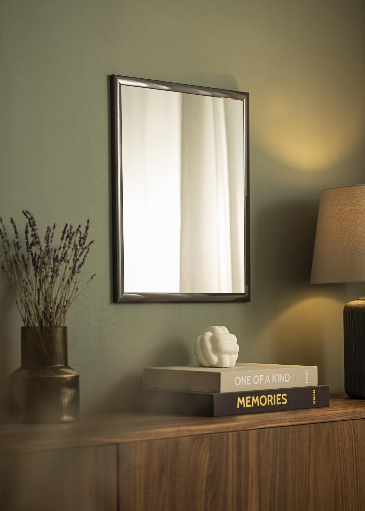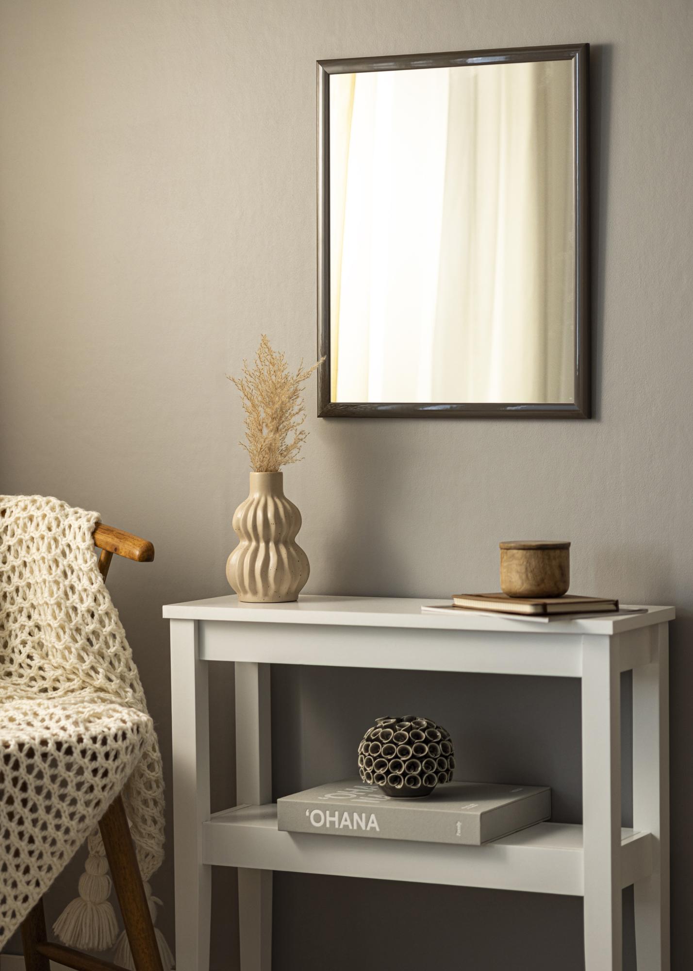 Der Rahmen des Spiegels ist 23 mm breit und aus Ayous-Holz gefertigt, was eine robuste und langlebige Konstruktion bietet. Mit einer Tiefe von 13 mm hat der Spiegel ein dezentes Profil, das sich in die meisten Umgebungen einfügt, ohne zu dominieren. Der dunkelgraue Farbton ist sowohl modern als auch zeitlos, was bedeutet, dass der Spiegel in verschiedene Einrichtungsstile passt, von minimalistisch bis traditionell.