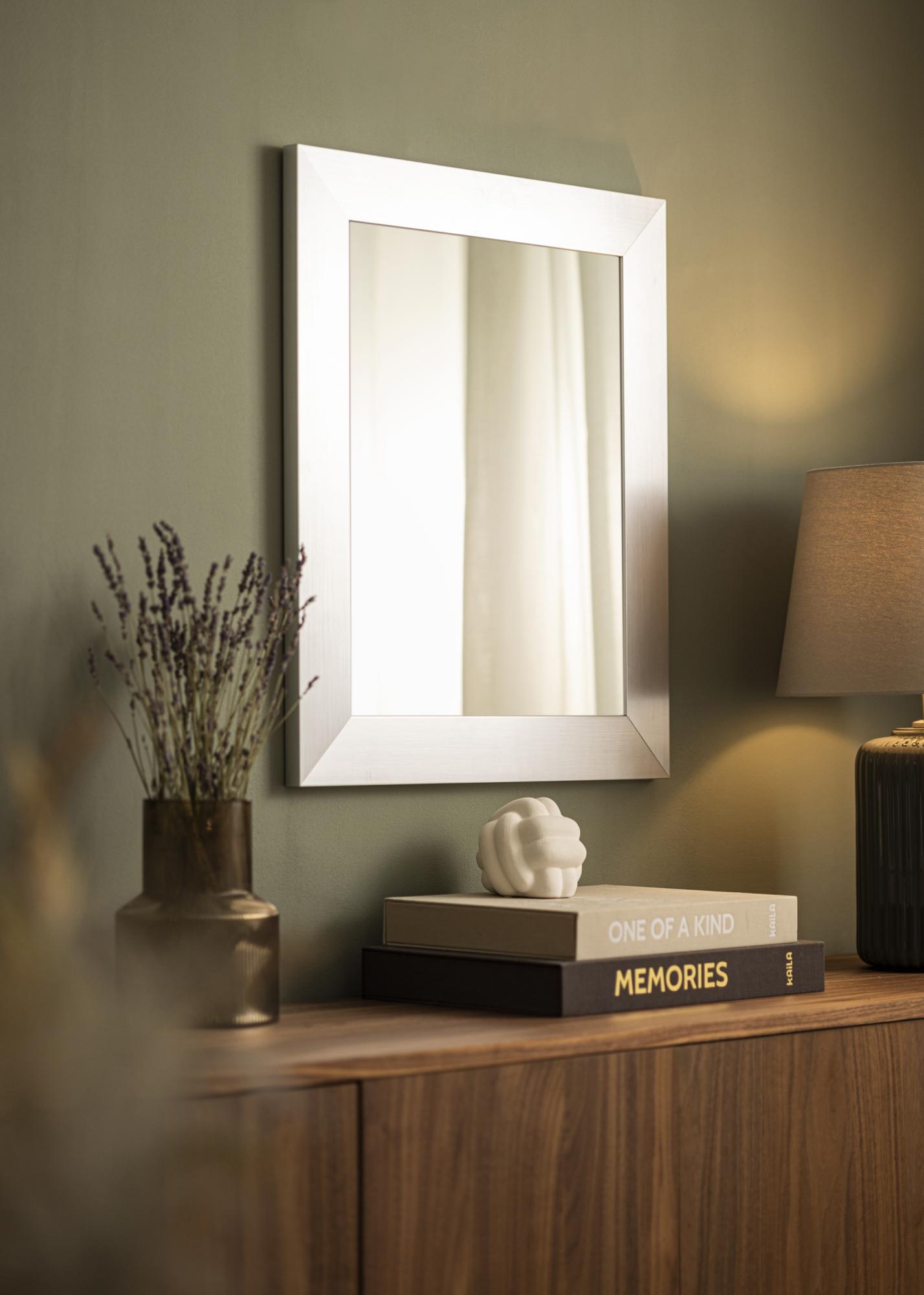 Spiegel Dover Glatt Silber ist ein eleganter und stilvoller Spiegel, der von uns mit großer Sorg hergestellt wird. Dieser Spiegel ist perfekt für Sie, wenn Sie ein modernes Einrichtungsdetail mit einem Hauch von Luxus suchen. Mit seinem breiten Rahmen in gebürstetem Silberfinish vermittelt er einen anspruchsvollen Eindruck und passt hervorragend in sowohl moderne als auch klassische Umgebungen.
