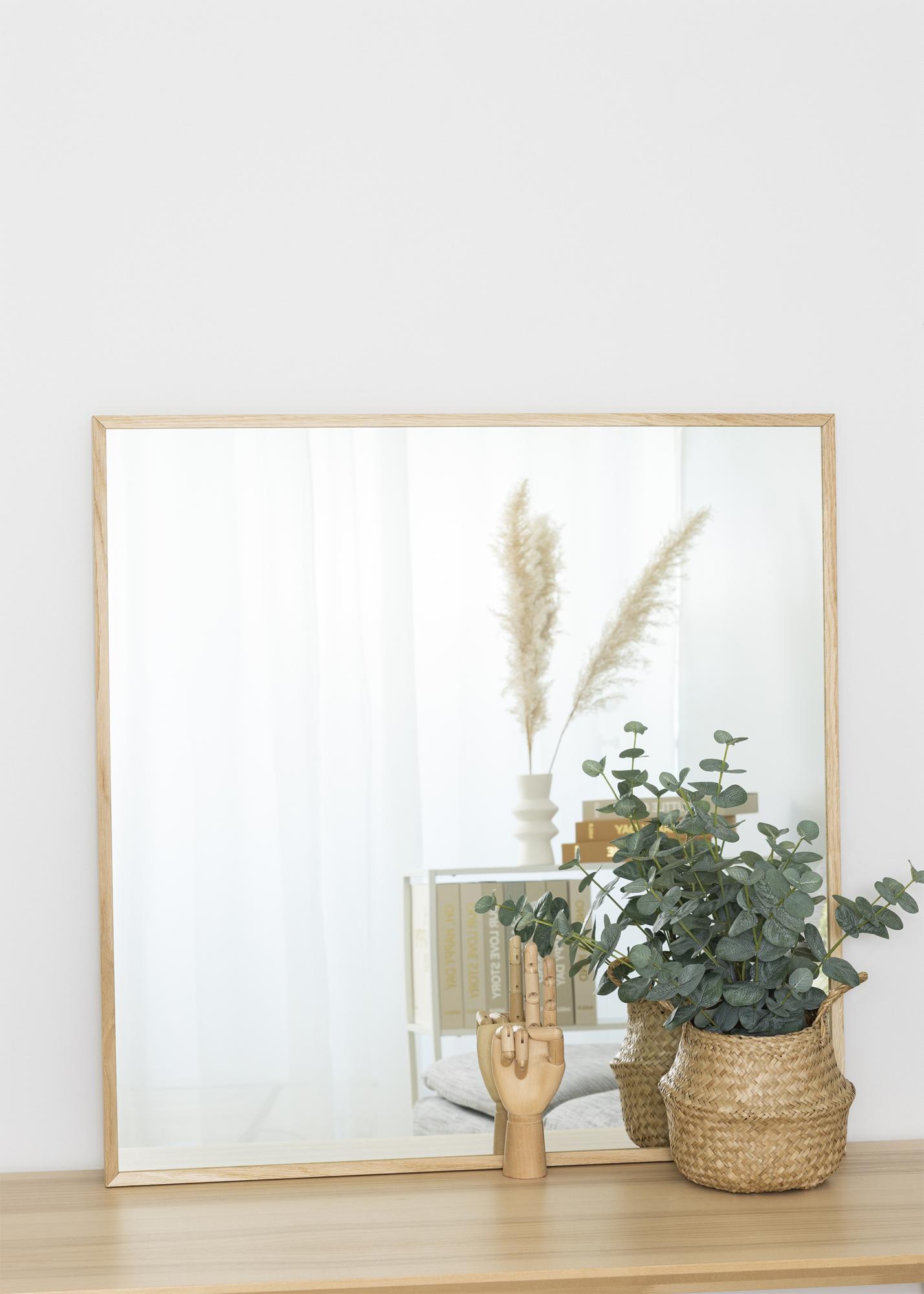 Dieser Wandspiegel zeichnet sich durch seinen schmalen Holzrahmen aus, der wunderbar zu vielen Wohnstilen und zu modernen als auch zu eher unkonventionellen Wohneinrichtungen passt. Der Wohnspiegel mit Holzrahmen ist ein Paradebeispiel für skandinavisches Design in seiner besten Form. Ungefärbtes Spiegelglas, das gerade Profil und der Rahmen aus hellem Holz ergeben ein klares, schnörkelloses Design, das stilsicher daherkommt und optisch erfrischend natürlich und ungekünstelt wirkt.