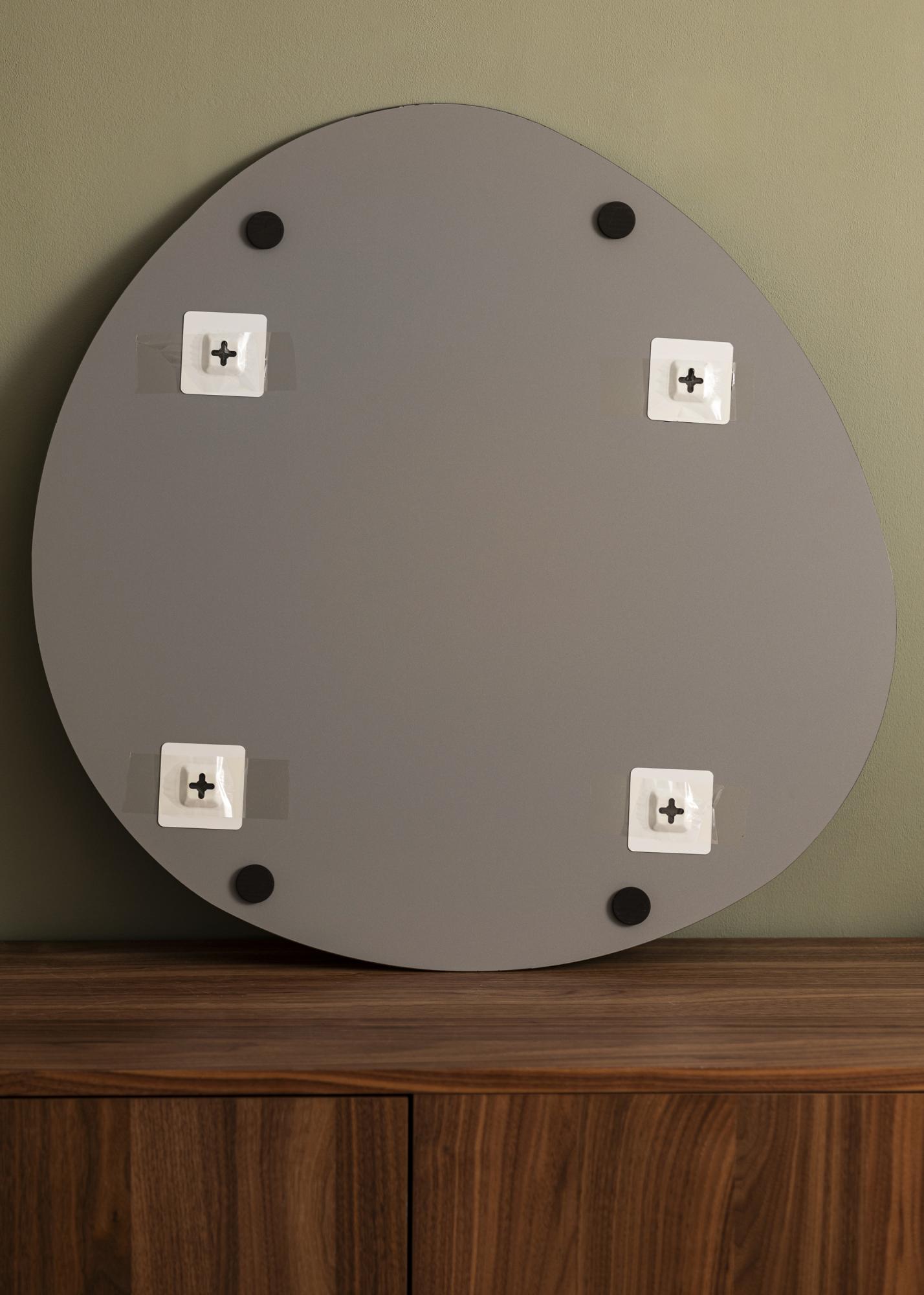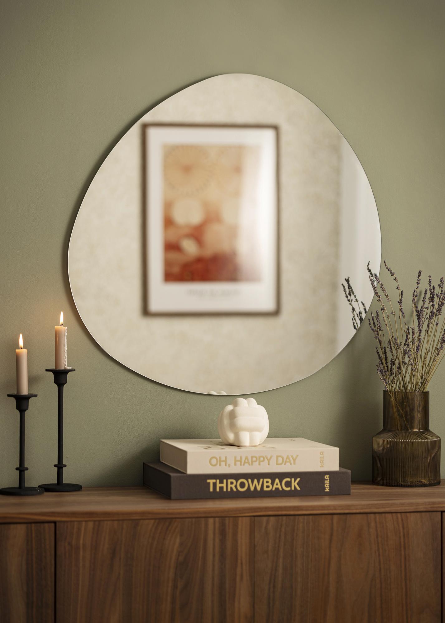 Entdecken Sie den eleganten und vielseitigen Spiegel, der zu einem natürlichen Blickfang in jedem Raum wird. Mit seinen großzügigen Abmessungen von 70x70 cm bietet dieser Spiegel eine praktische und dekorative Funktion in Ihrem Zuhause. Seine abgerundete Form mit einer sanften Biegung oben verleiht dem Raum eine organische und entspannte Atmosphäre und behält gleichzeitig eine moderne Ästhetik bei.