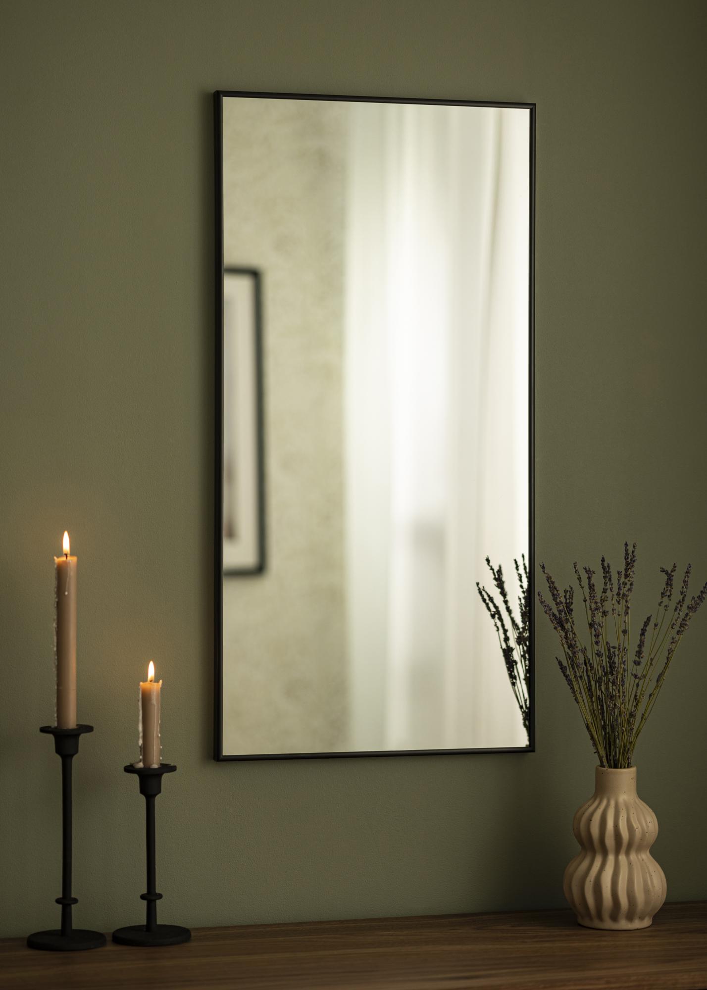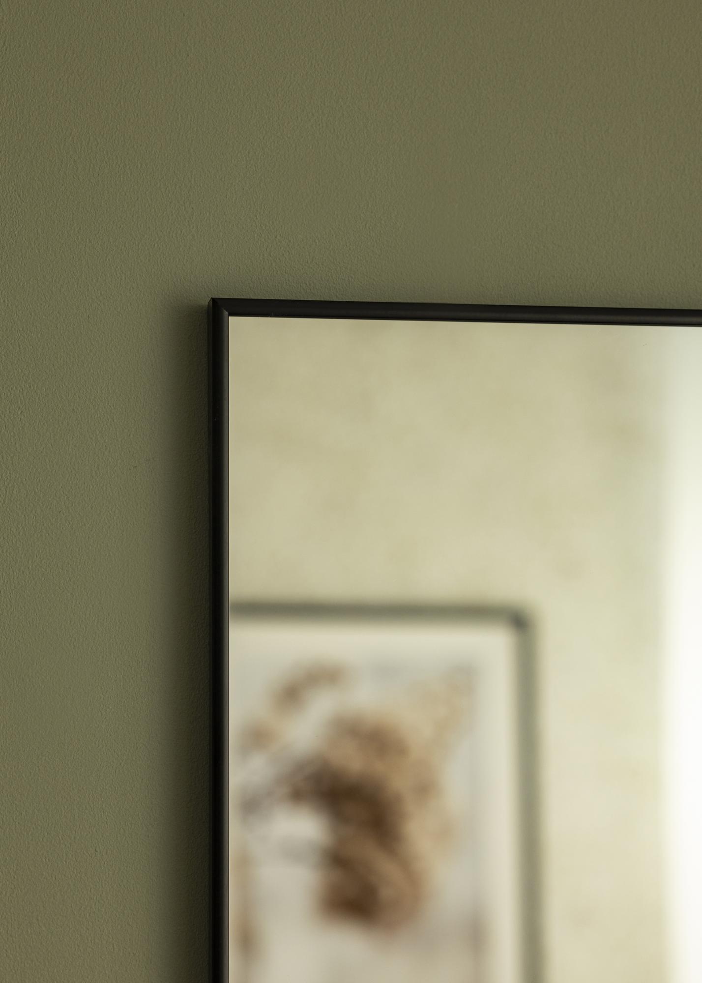 Dieser Spiegel ist umrahmt von einem anspruchsvollen schwarzen Aluminiumrahmen, der Ihrer Einrichtung eine moderne Note verleiht. Er ist nicht nur ein praktischer Gegenstand, sondern auch ein dekoratives Detail, das sowohl klassische als auch zeitgenössische Stile ergänzt.