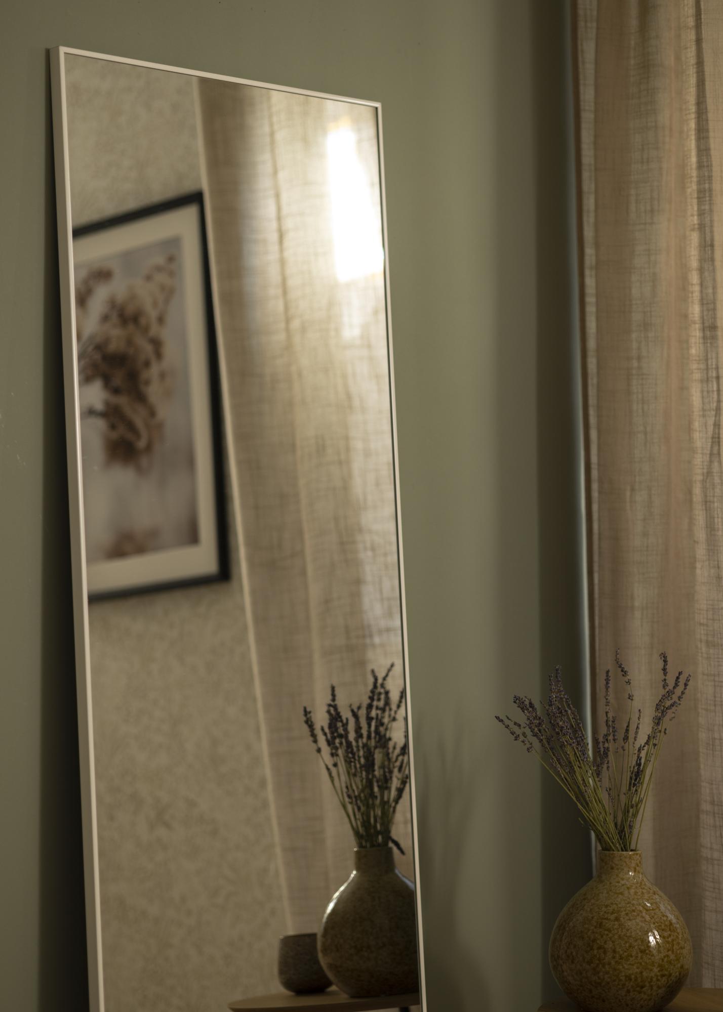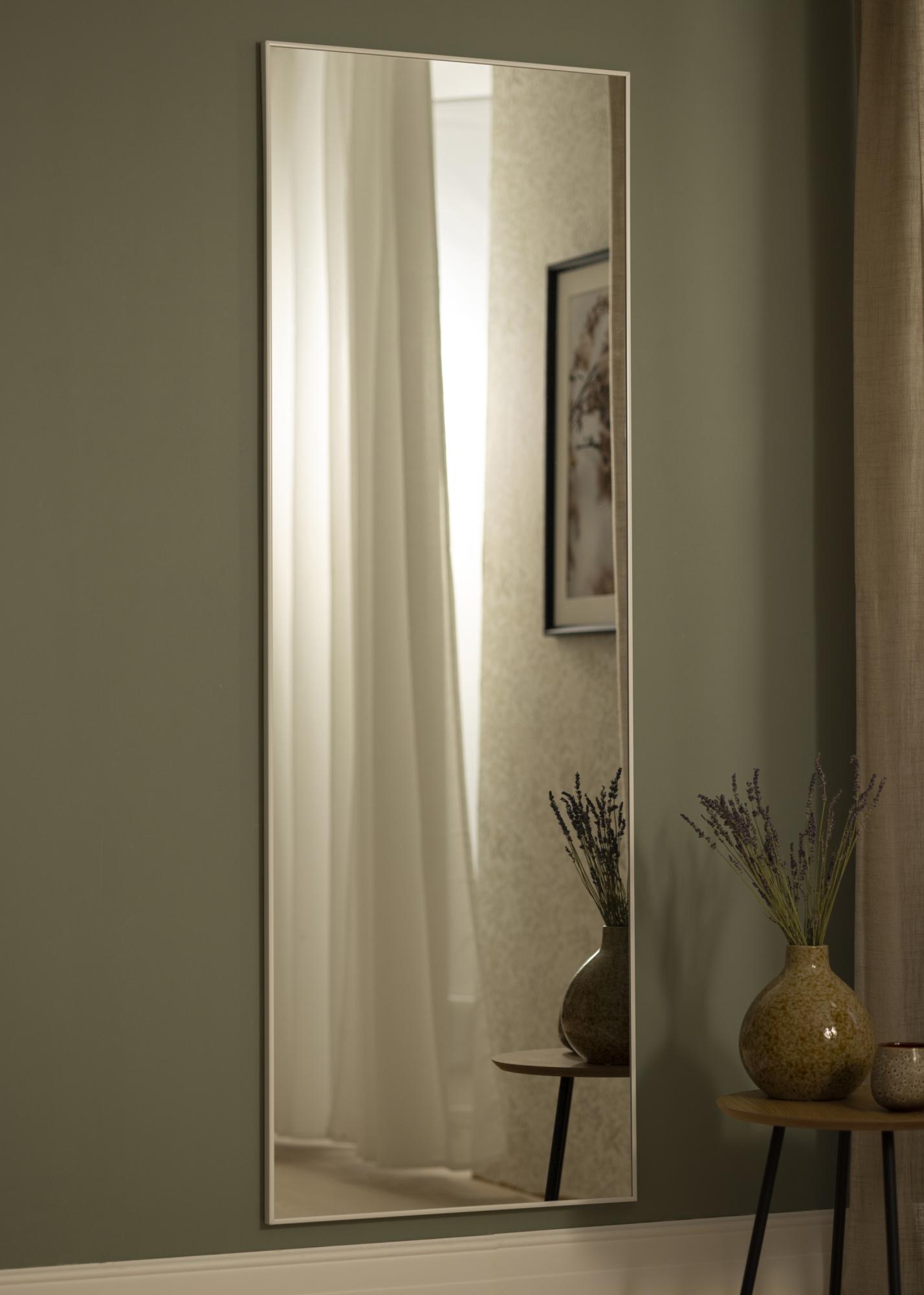 Entdecken Sie die stilvolle Eleganz unseres rechteckigen Spiegels, perfekt gestaltet, um Ihrem Zimmer ein Gefühl von Raum und Licht zu verleihen. Mit seinen großzügigen Maßen von 60x165 cm bietet der Spiegel eine Ganzkörperreflexion, die ihn ideal für Schlafzimmer, Flure oder Ankleidezimmer macht. Der weiße Aluminiumrahmen umgibt das Spiegelglas mit subtilem Charme und ergänzt verschiedene Einrichtungsstile.