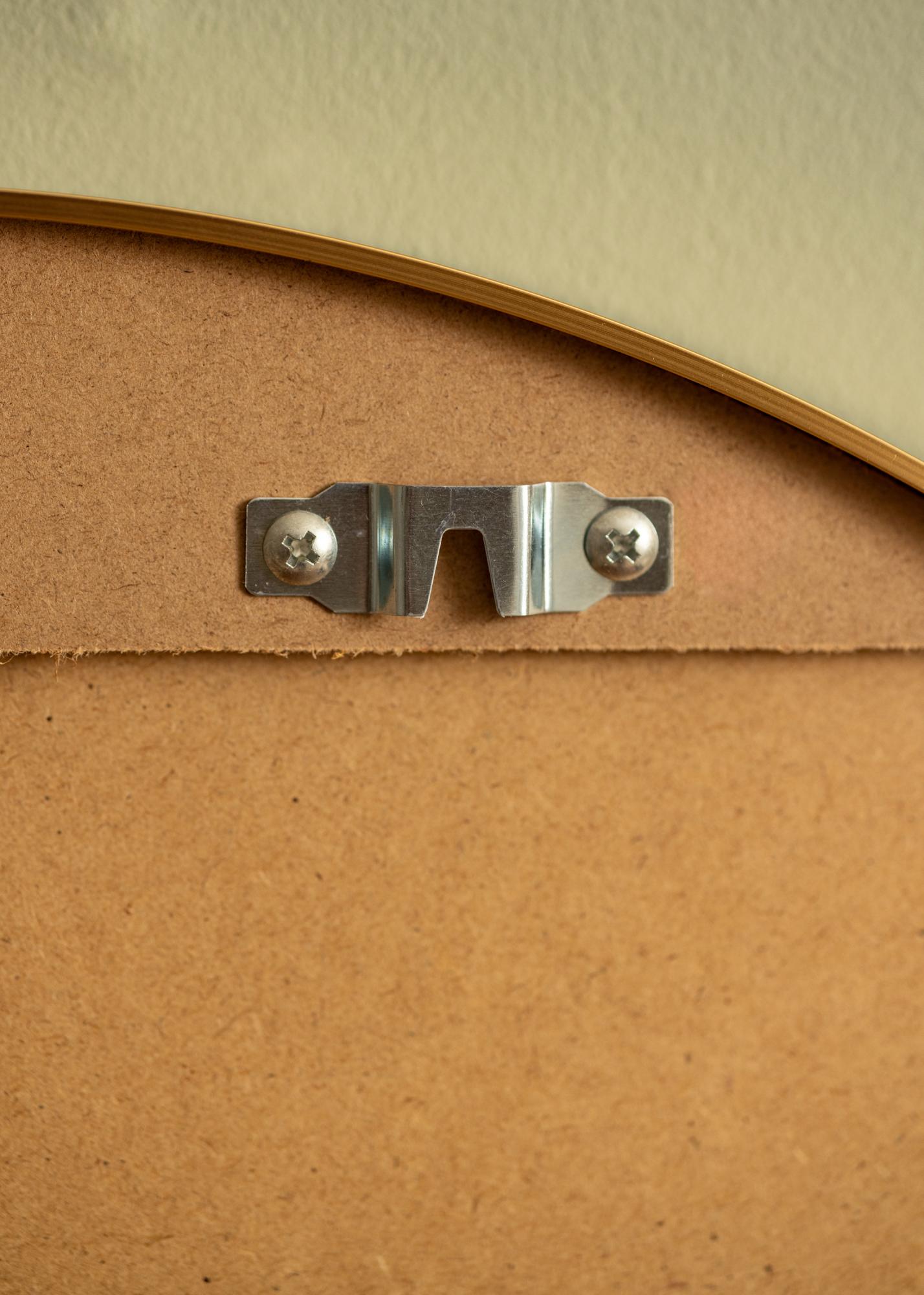 Auf der Rückseite des Spiegels befindet sich eine Halterung für die Befestigung des Spiegels an der Wand, sodass du den Spiegel unkompliziert aufhängen kannst. Natürlich macht dieser Spiegel mit goldenem Rahmen auch aufgestellt auf einem Möbelstück und an die Wand gelehnt eine tolle Figur.