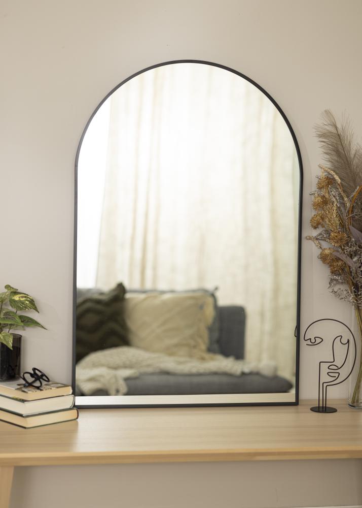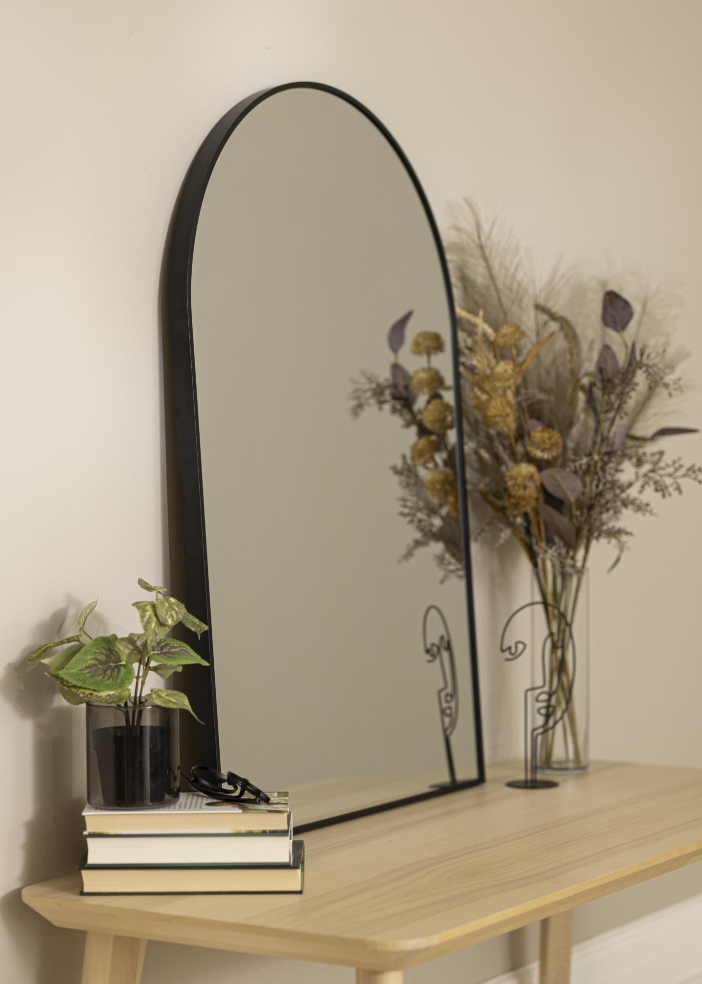 Eine ausgezeichnete Wahl für alle, die einen modernen Spiegel in trendigem Design mit edler Bogenform und stilsicher schwarzem Rahmen suchen. Dieser schöne Wandspiegel ist 28 mm tief, der Rahmen ist aus Metall gefertigt. Dieser Spiegel ist ein echter Hingucker für jeden Flur, den Eingangsbereich und macht auch als Wohnzimmerspiegel eine tolle Figur, da er auf eine schöne Art und Weise das Licht jedweder Lichtquelle im Raum reflektiert. Dank des robusten Materials kann dieser Spiegel mit schwarzem Rahmen auch im Badezimmer verwendet werden.