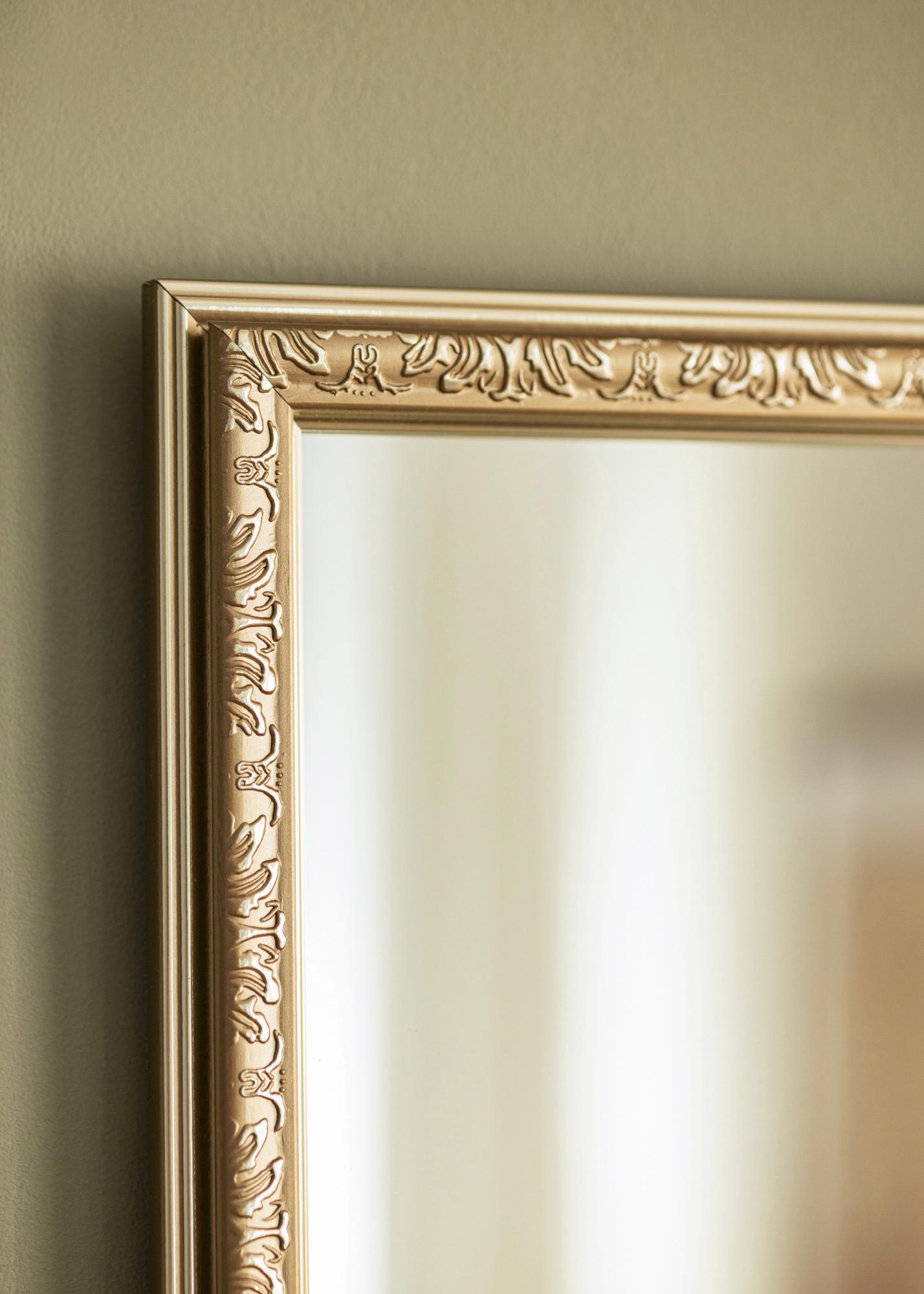 Lass diesen zeitlosen, eleganten Spiegel die Wände bei dir Zuhause verschönern! Der silberfarbene Rahmen des Spiegels zeichnet sich durch sein edles, nostalgisch bzw. antik anmutendes Profil mit stilvollem Ornament-Muster aus. Das klassische, stilsichere Design dieses Wandspiegels bereichert jeden Raum und macht einen echten Blickfang aus, ob als einzige Deko an der Wand oder in Kombination mit hübsch eingerahmten Bildern als persönlich gestaltete Bilderwand.