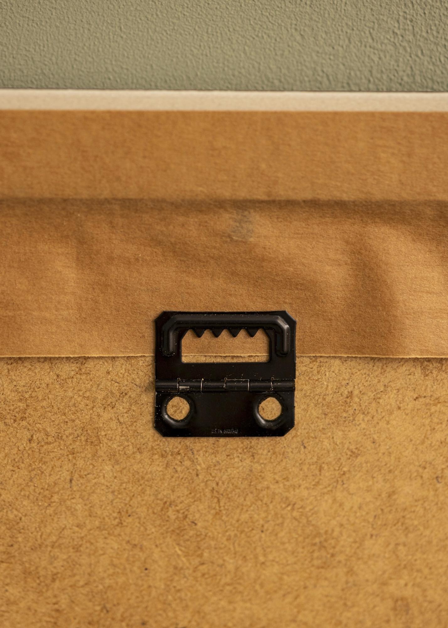 Der Spiegel ist aus ungefärbtem Spiegelglas gefertigt und besitzt einen 2,8 cm breiten Rahmen aus Komposit (Kunststoff). Der Wandspiegel kann sowohl im Hochformat als auch im Querformat aufgehängt werden.